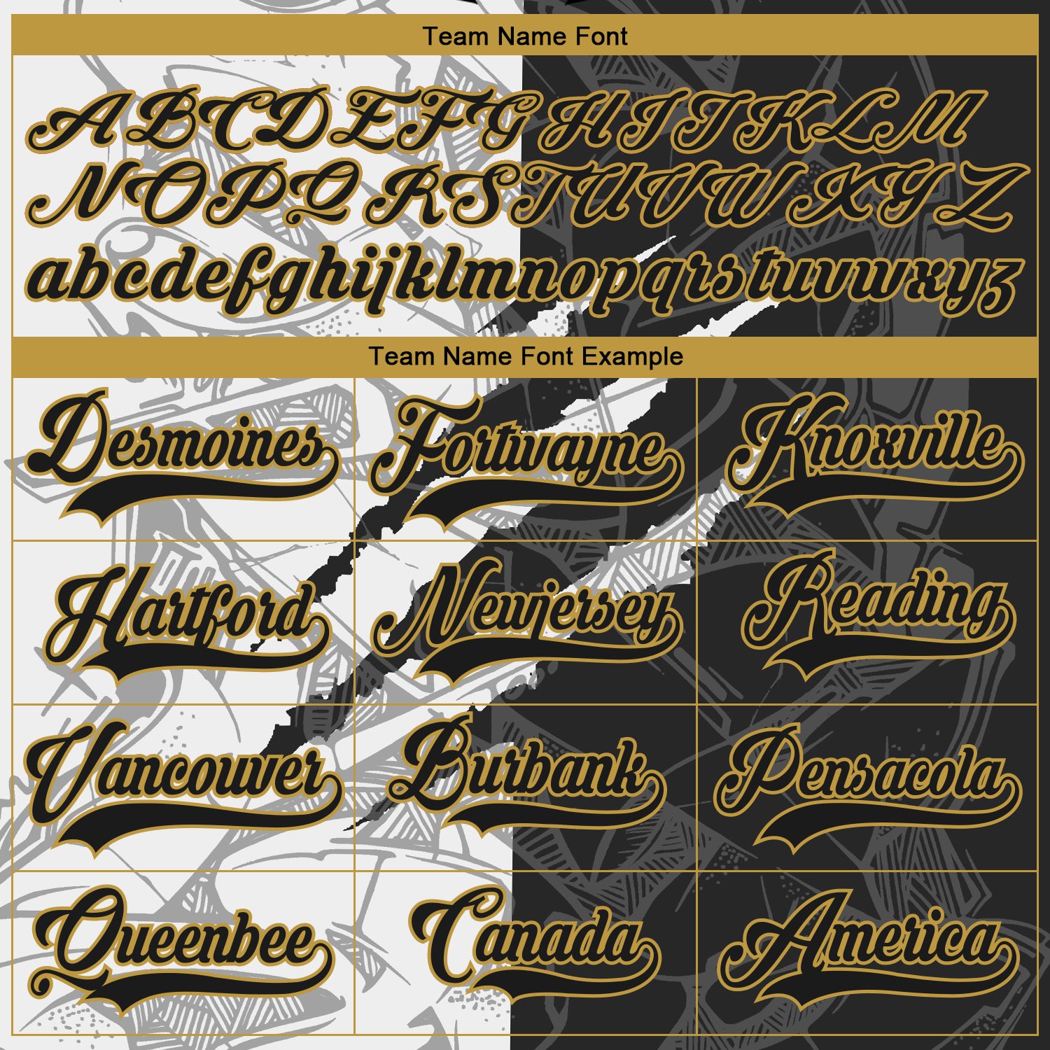 Custom Black White-Old Gold 3D Pattern Gradient Fashion Scratch Hockey Lace Neck Jersey