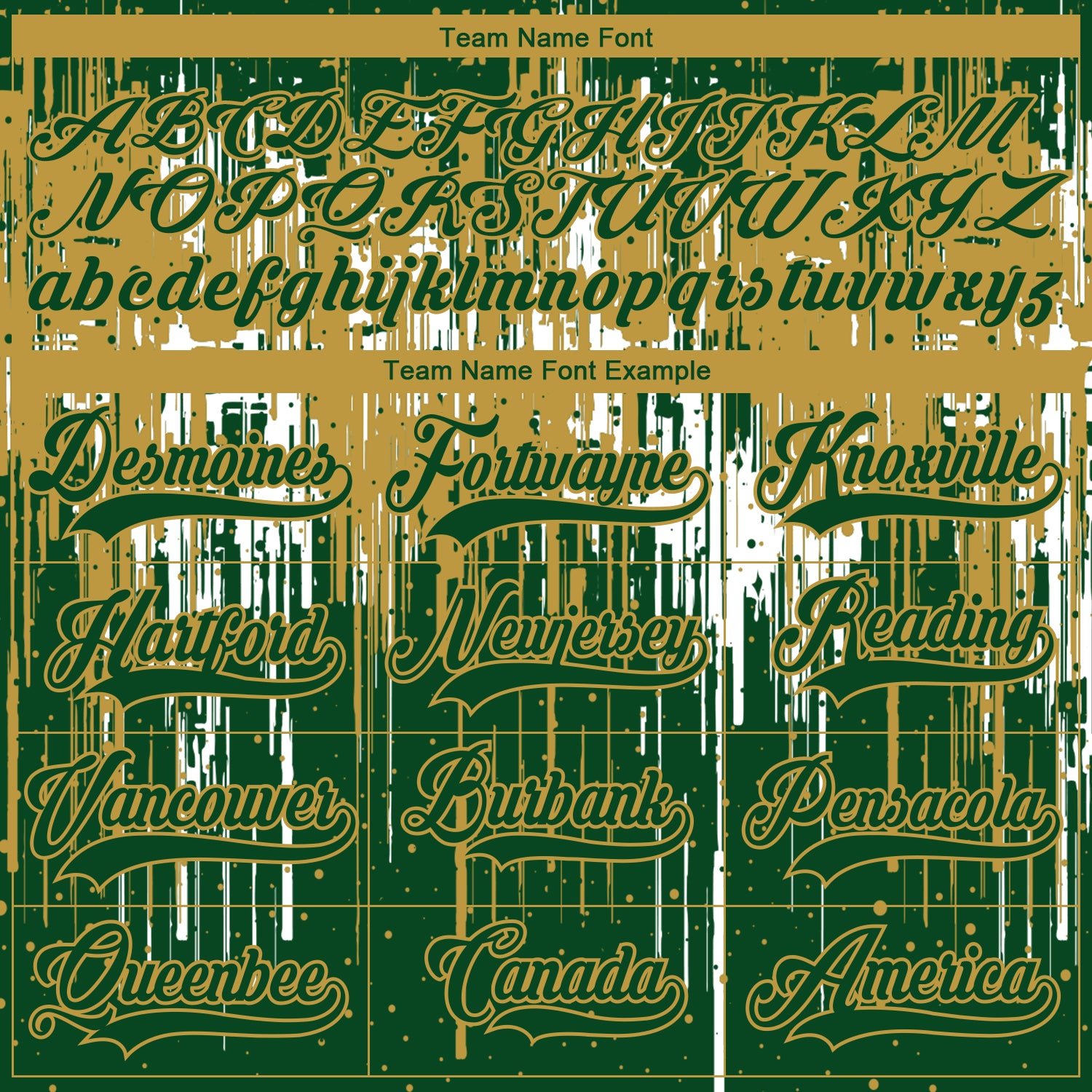 Custom Green Old Gold-White 3D Pattern Dripping Splatter Hockey Lace Neck Jersey