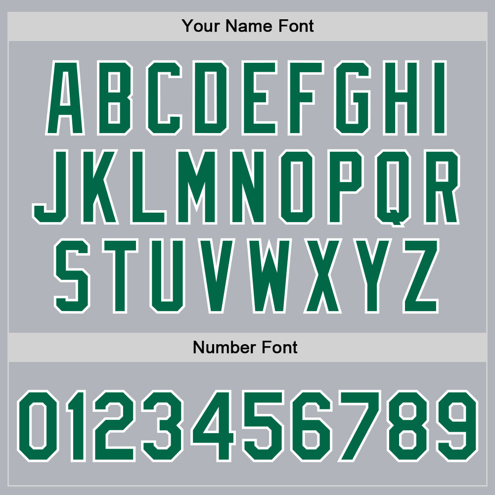 Custom Gray Kelly Green-White Bomber Full-Snap Varsity Faux Leather Letterman Jacket