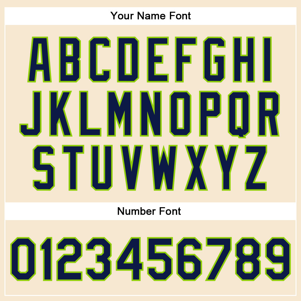 Custom Cream Navy-Neon Green Bomber Full-Snap Varsity Faux Leather Letterman Jacket