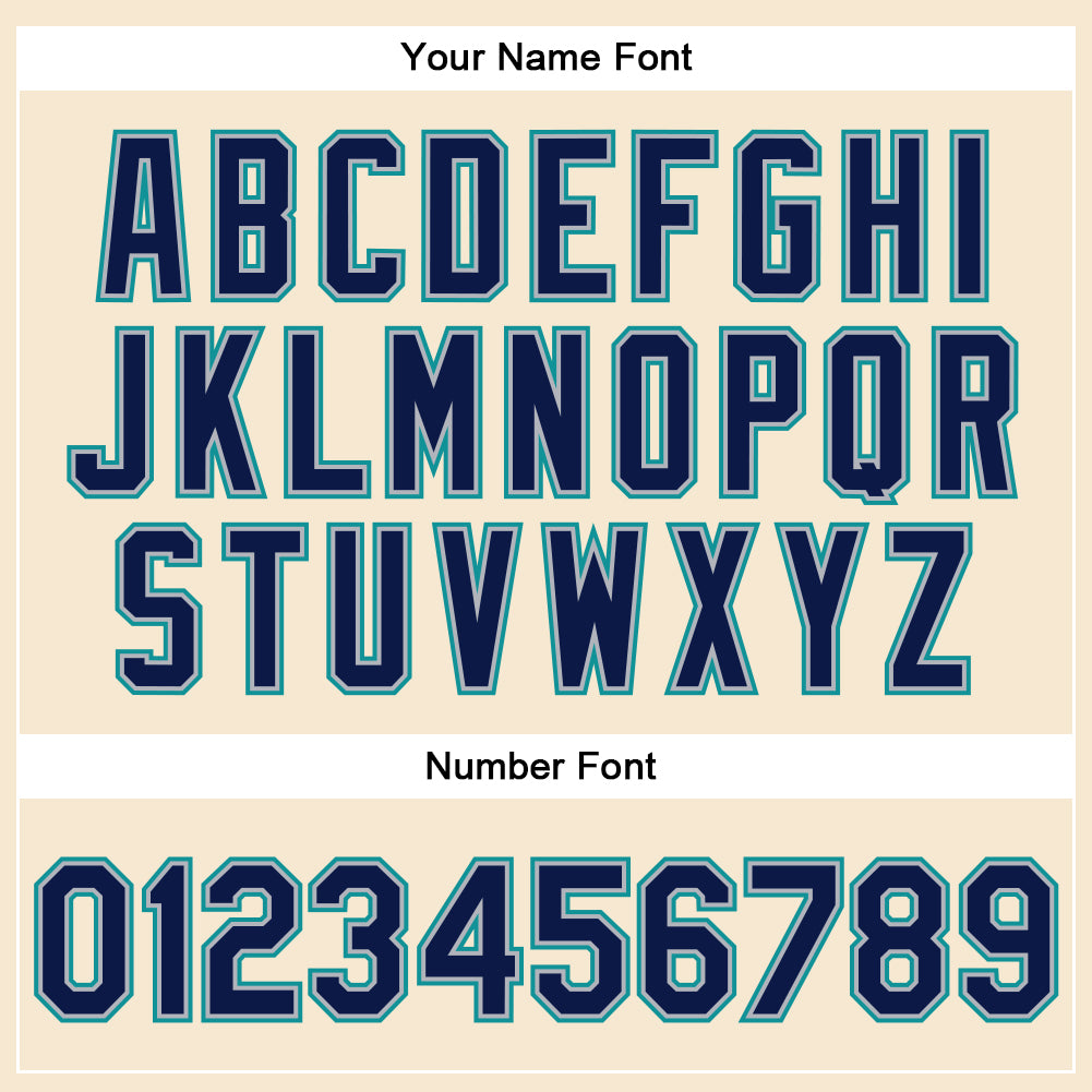 Custom Cream Navy Teal-Gray Bomber Full-Snap Varsity Faux Leather Letterman Jacket