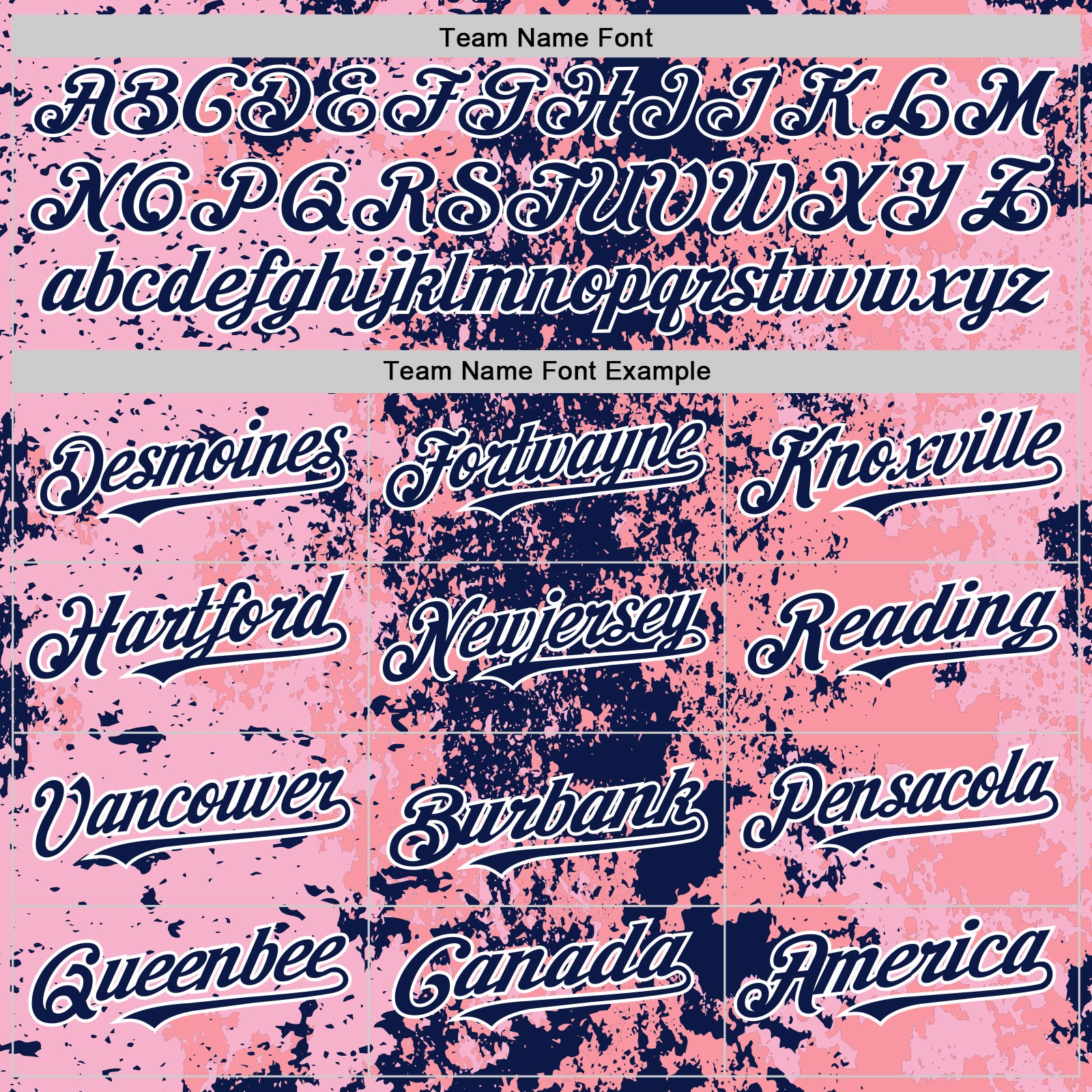 Custom Pink Navy-White 3D Pattern Design Bomber Full-Snap Varsity Letterman Hoodie Jacket