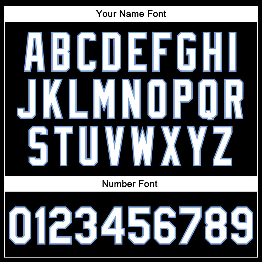 Custom Black White-Light Blue Bomber Full-Snap Varsity Faux Leather Letterman Jacket