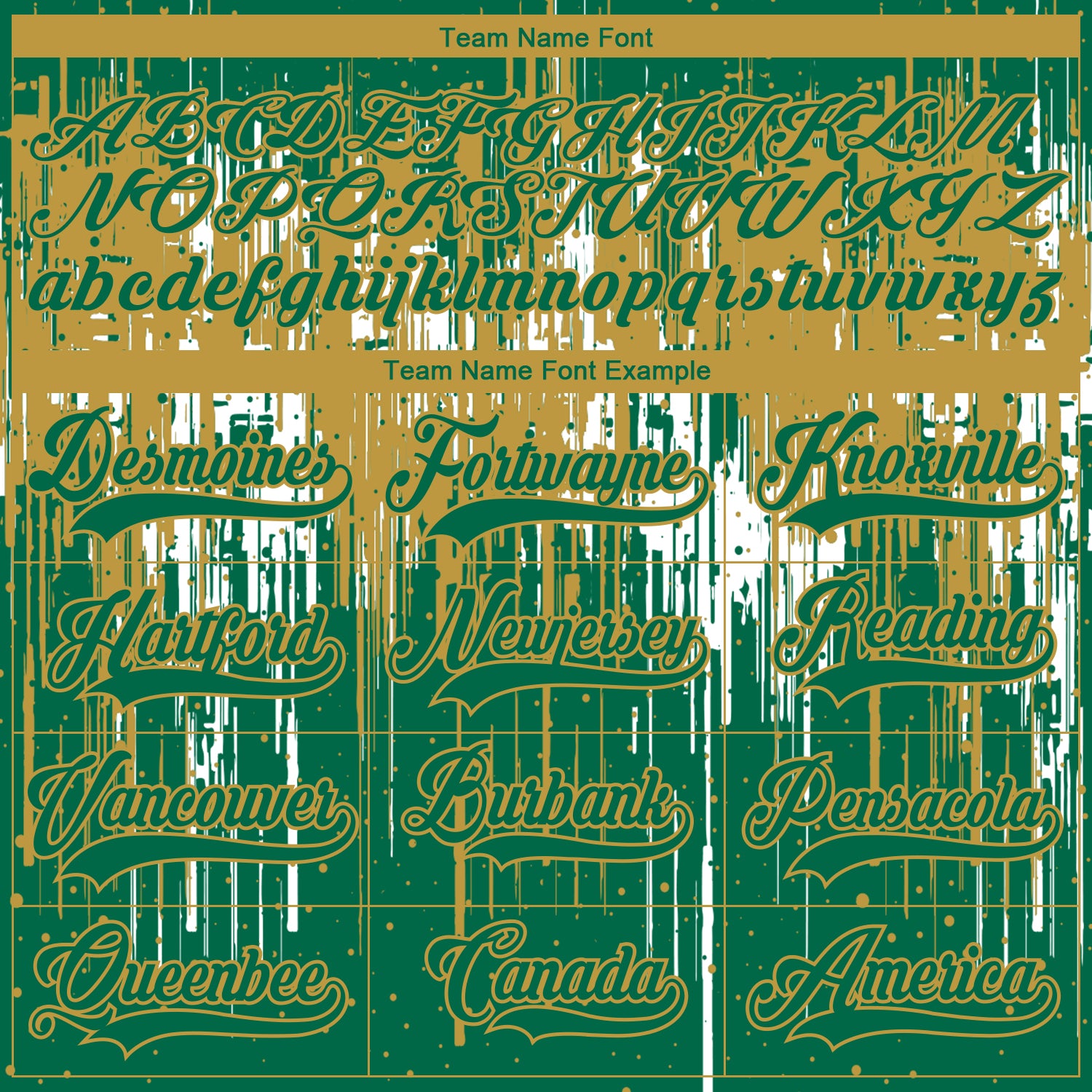 Custom Kelly Green Old Gold-White 3D Pattern Dripping Splatter Hockey Lace Neck Jersey