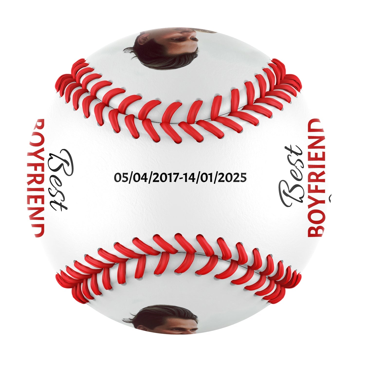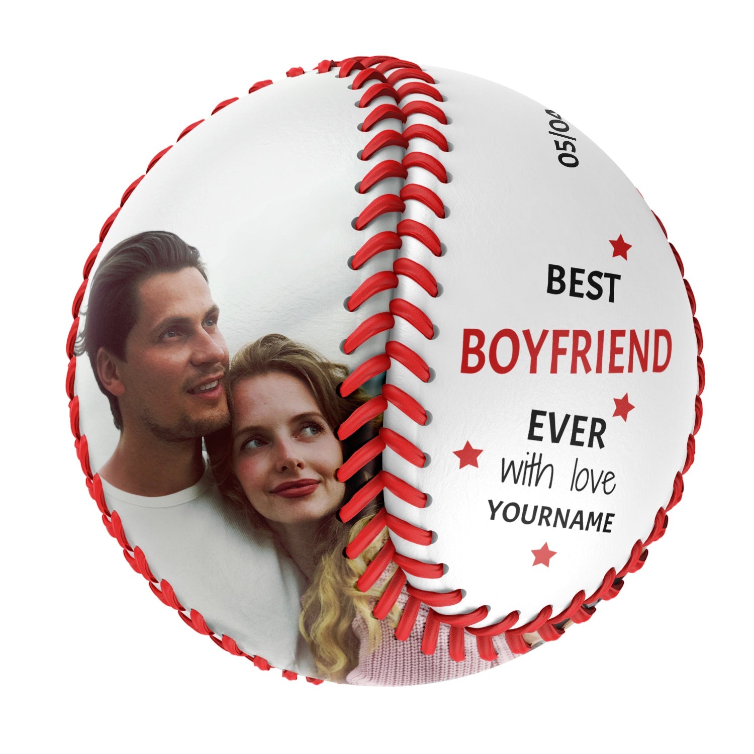 Best Boyfriend Ever Personalized Anniversary Name Date Photo White Baseballs