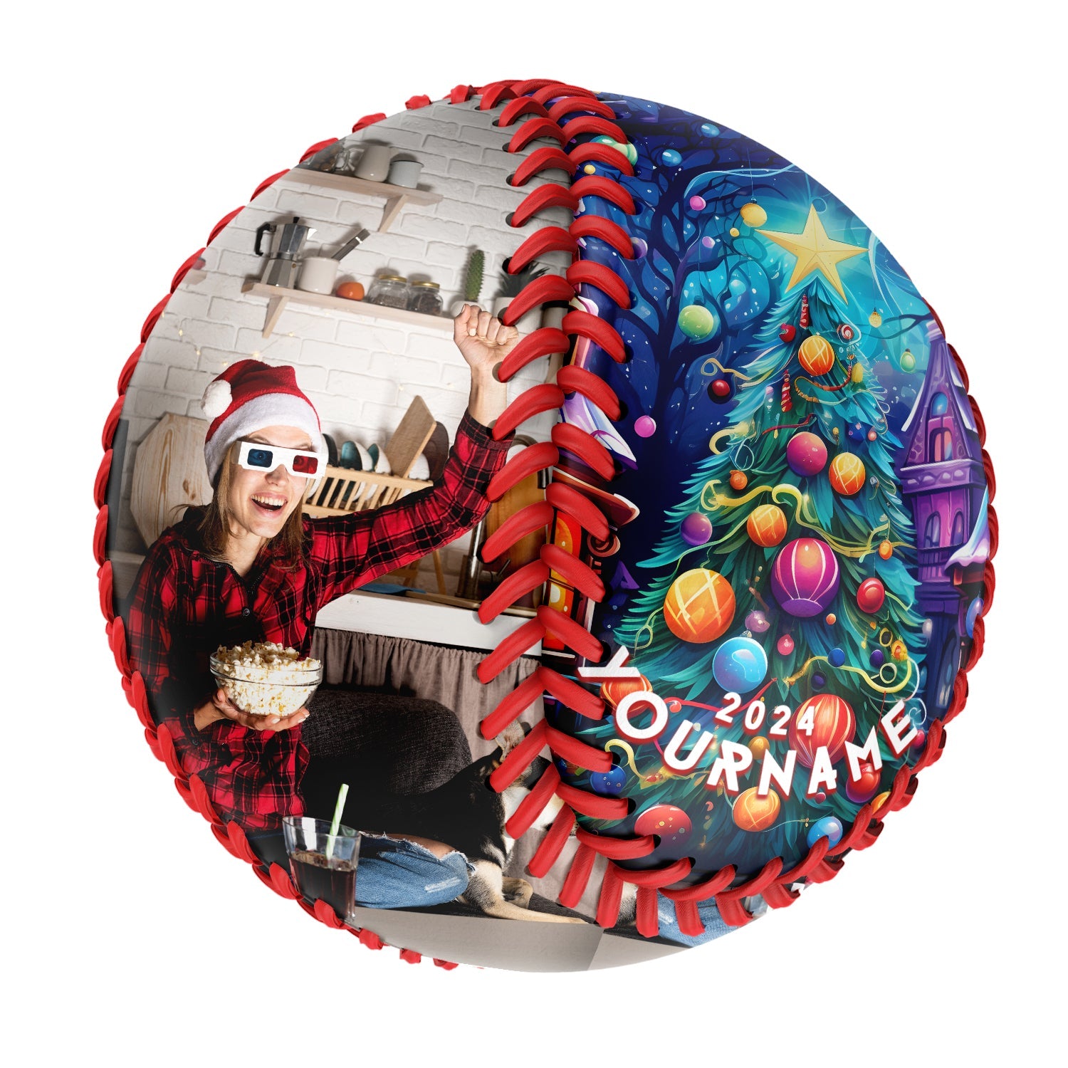 Personalized Christmas Cartoon Tree Photo Baseballs