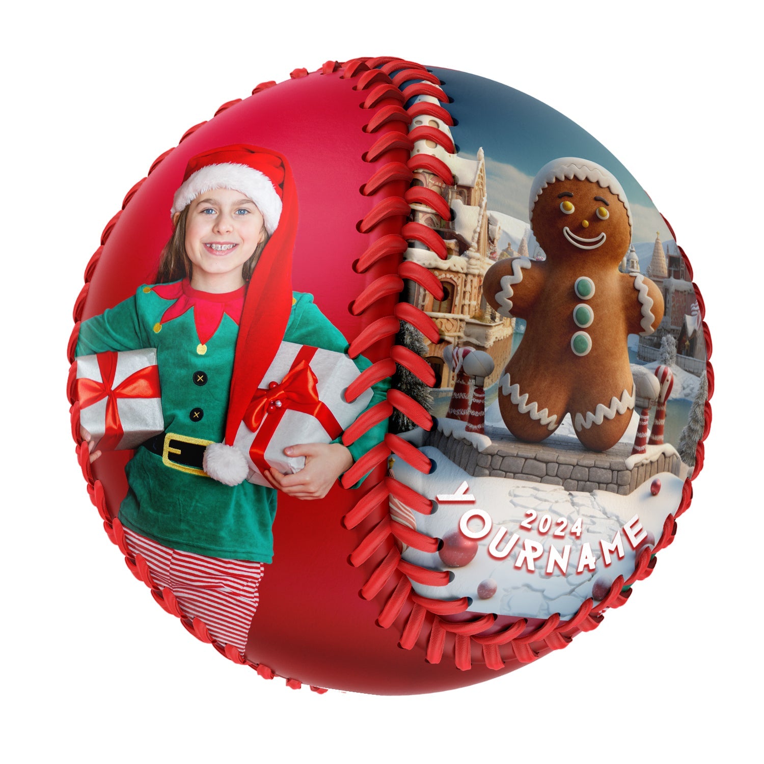Personalized Christmas Ginerbread Snow Photo Baseballs
