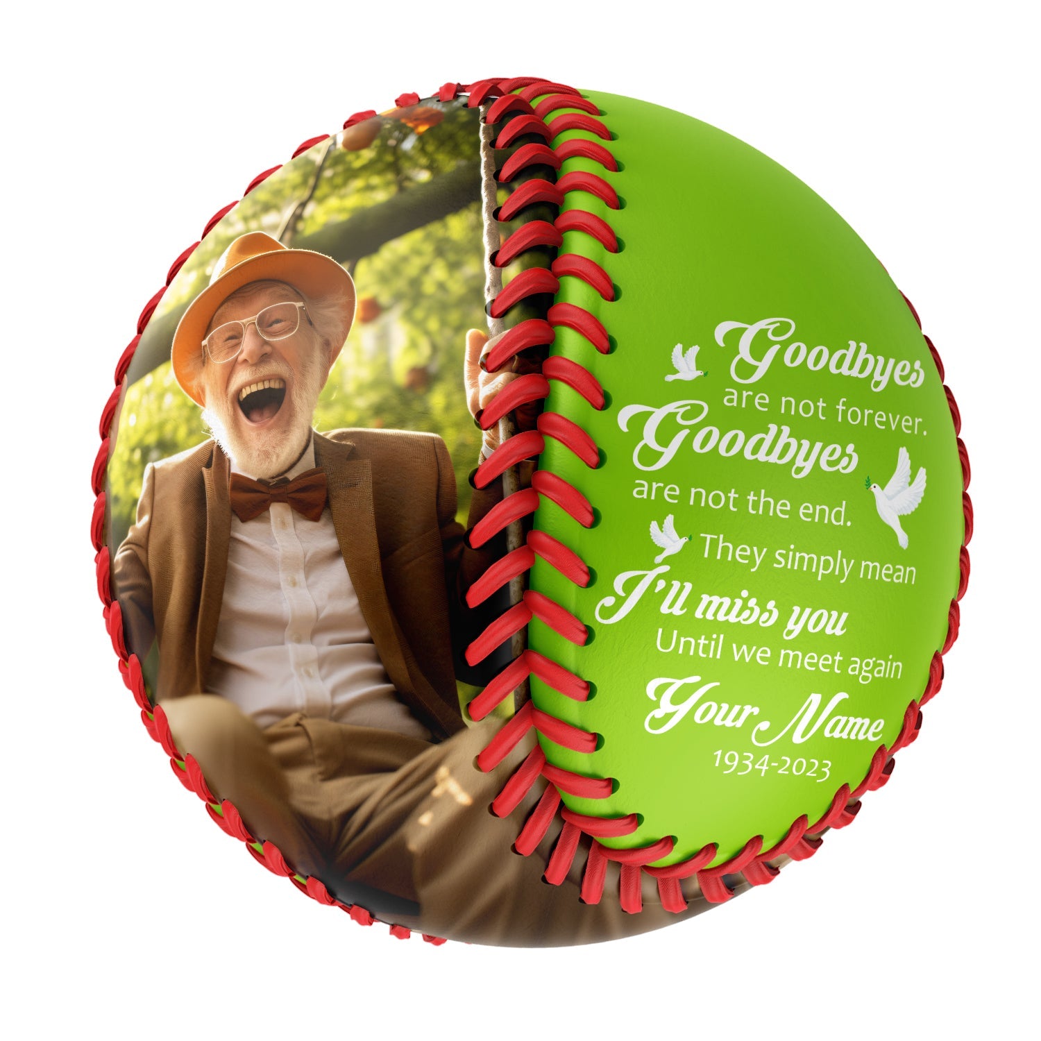 Personalized Neon Green Memorial Photo Baseballs