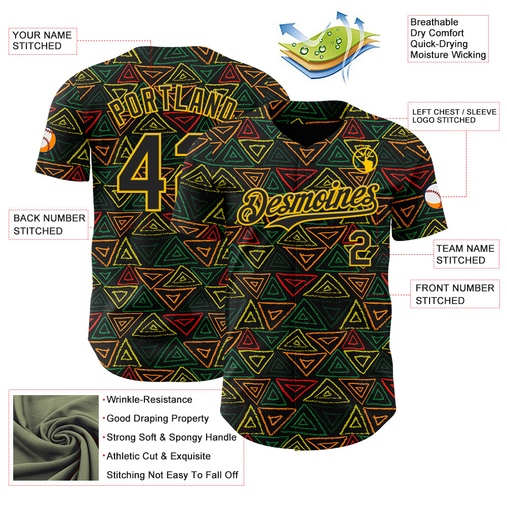 Custom Black Red Green-Yellow 3D Pattern Design Black History Month African Ethnicity Style Abstract Geometric Authentic Baseball Jersey