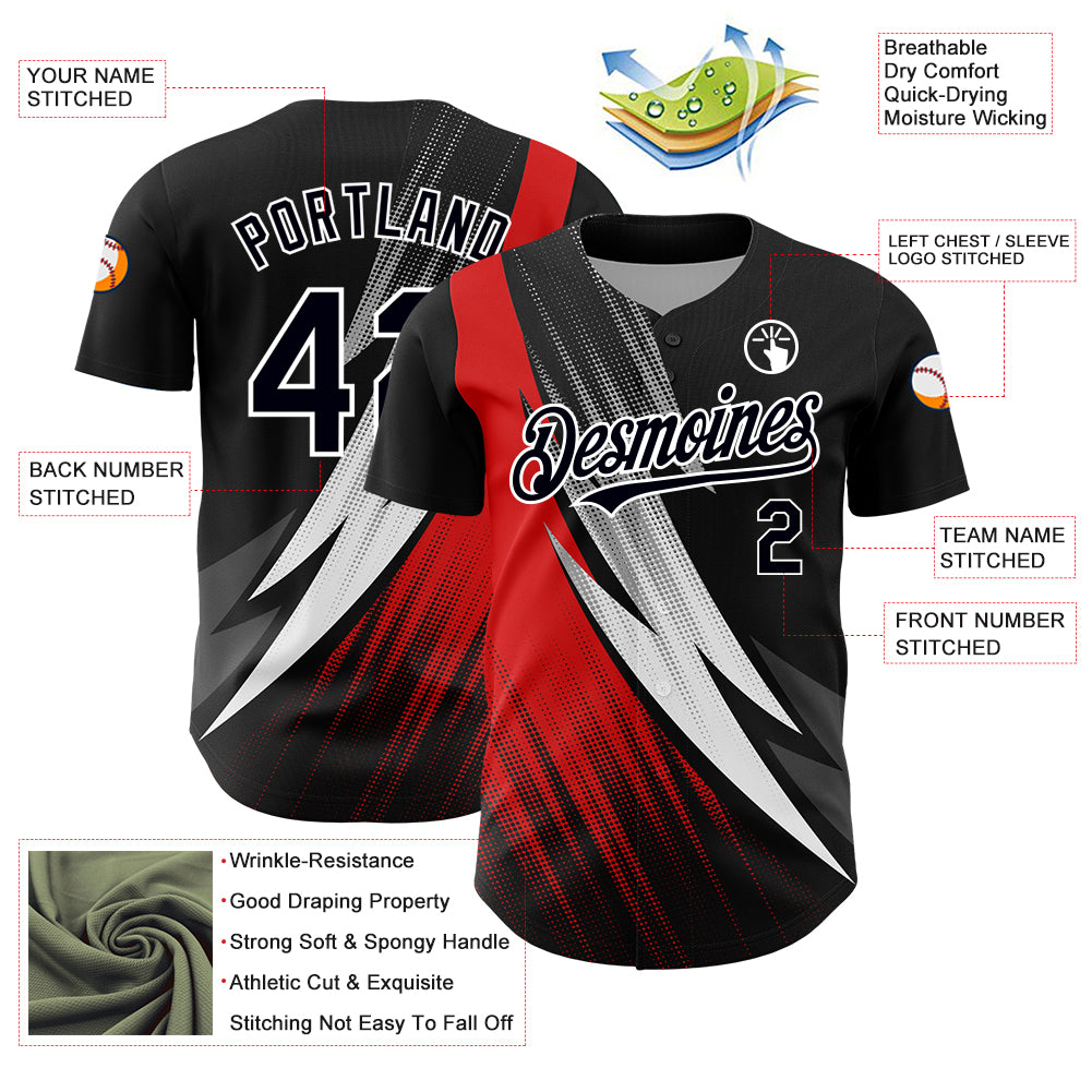 Custom Black Red-White 3D Pattern Design Geometric Shape Authentic Baseball Jersey