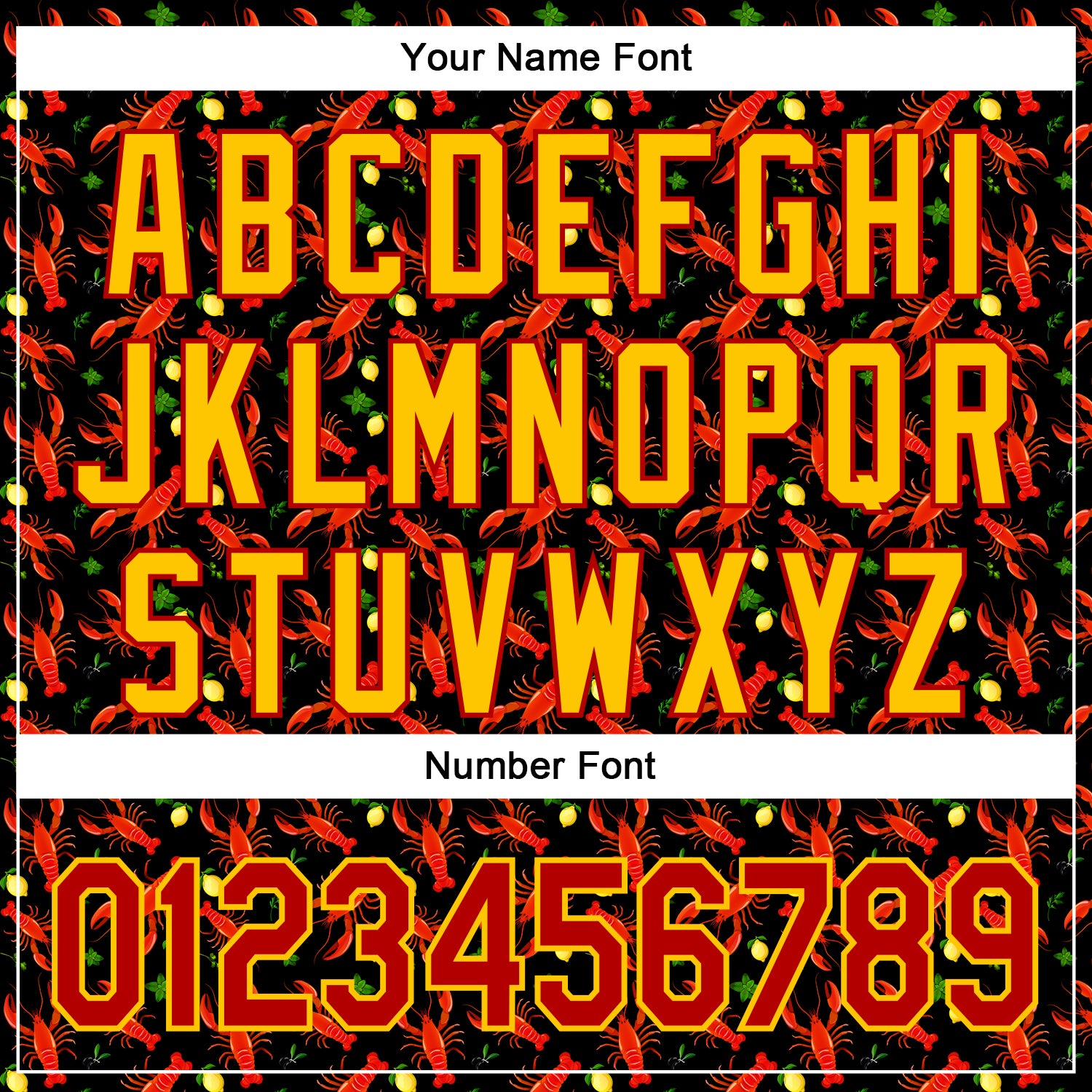Custom Black Red-Yellow 3D Pattern Design Animal Lobster Fruit Lemon Authentic Baseball Jersey