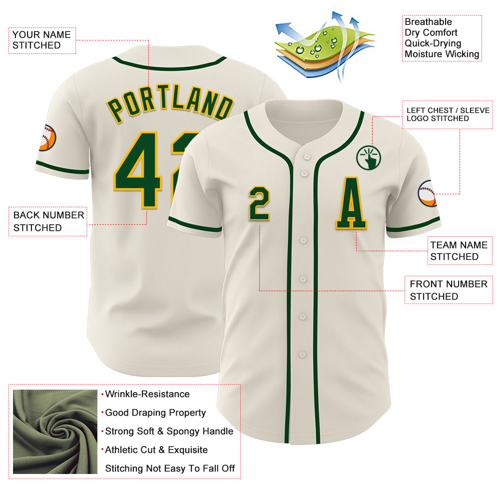 Custom Cream Green-Gold Authentic Baseball Jersey