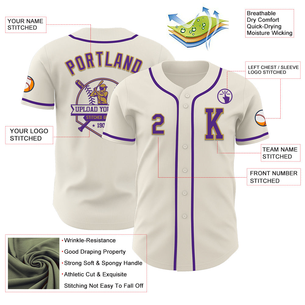 Custom Cream Purple-Old Gold Authentic Baseball Jersey