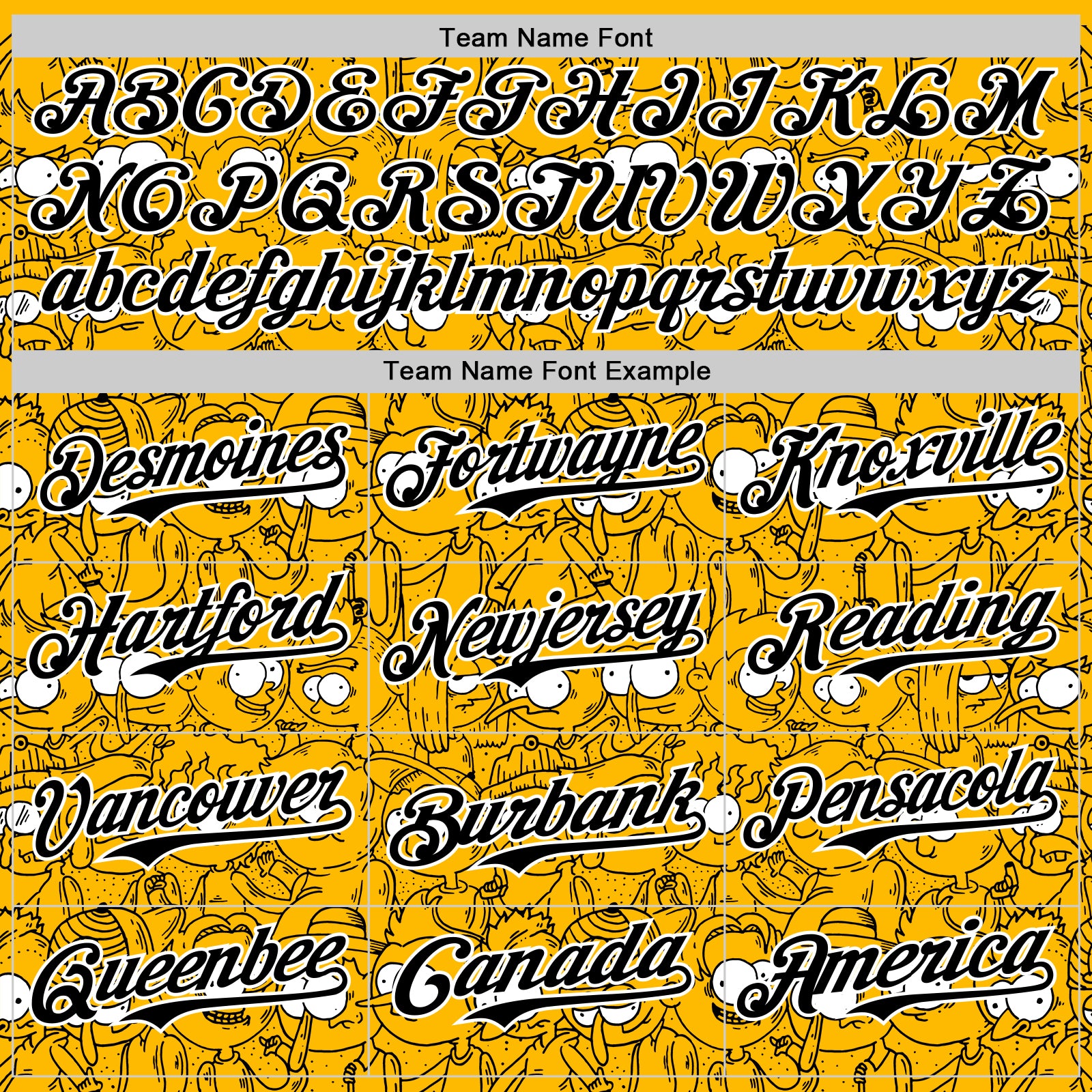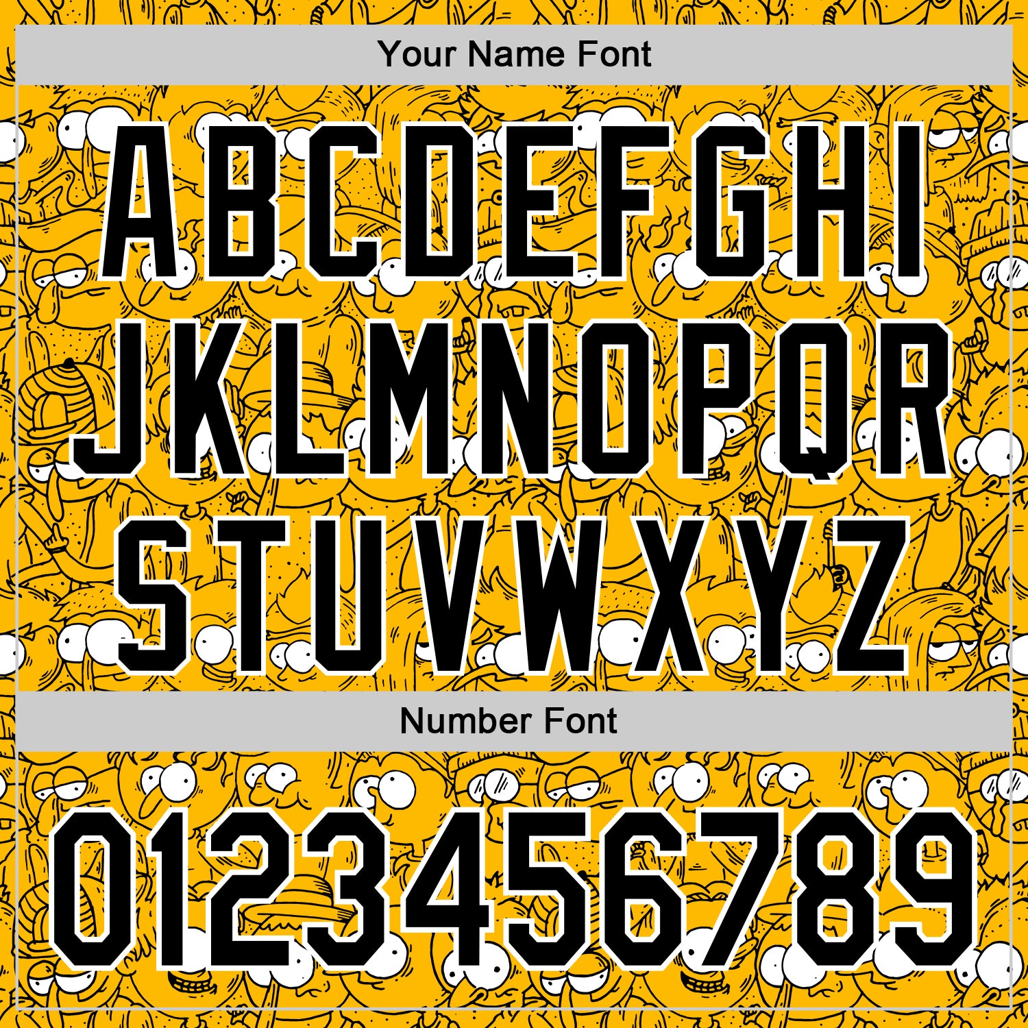 Custom Gold Black-White 3D Pattern Design Funny Cartoon People Authentic Baseball Jersey
