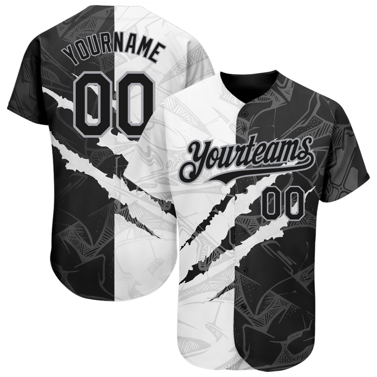 Custom Graffiti Pattern Black-Gray 3D Scratch Authentic Baseball Jersey