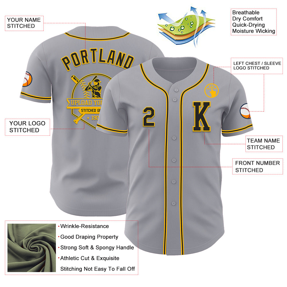 Custom Gray Black-Gold Authentic Baseball Jersey