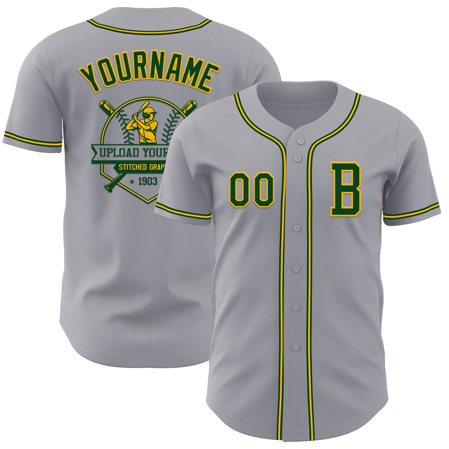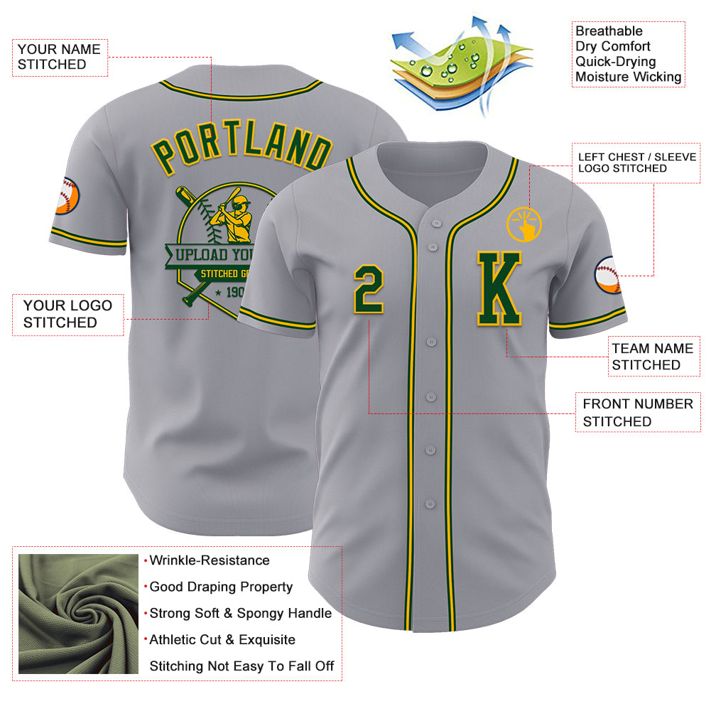 Custom Gray Green-Gold Authentic Baseball Jersey