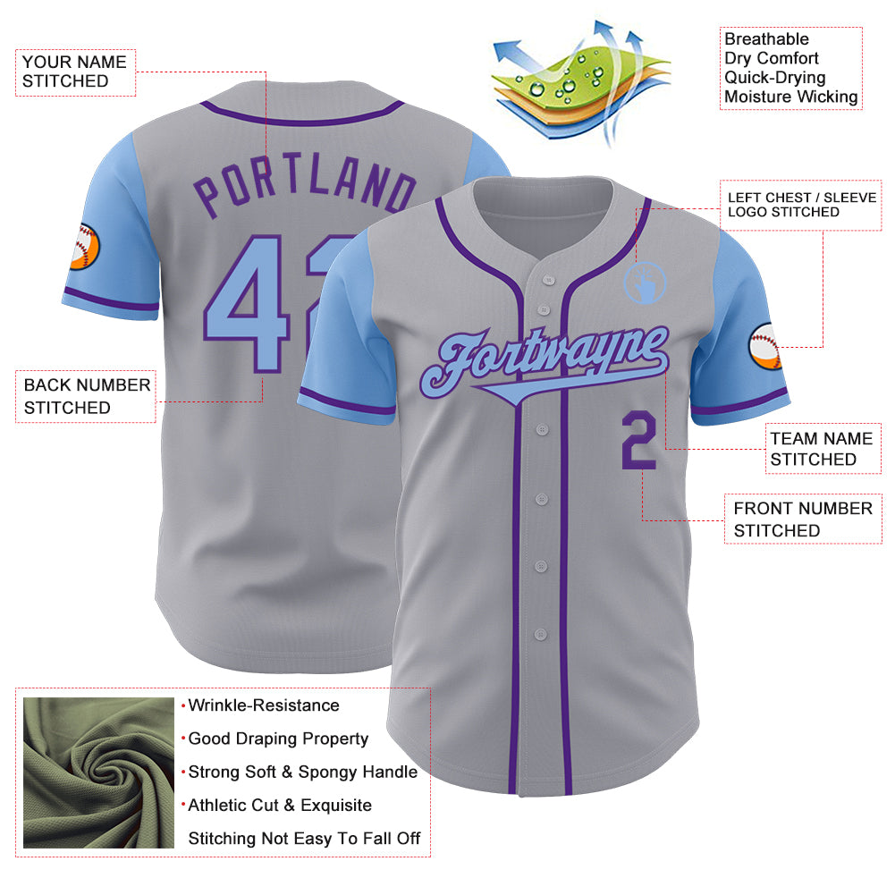 Custom Gray Light Blue-Purple Authentic Two Tone Baseball Jersey