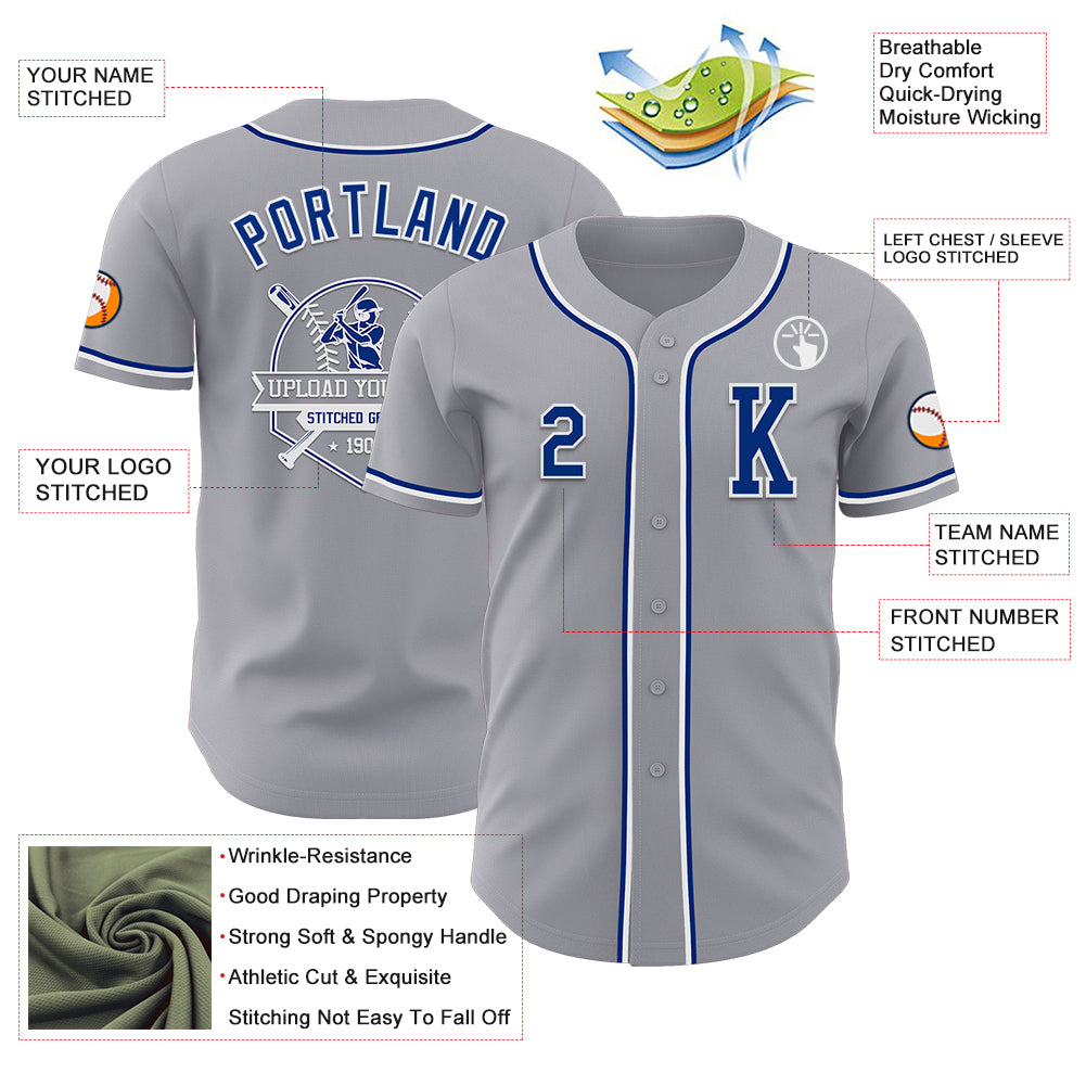 Custom Gray Royal-White Authentic Baseball Jersey