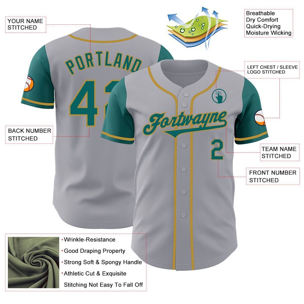 Custom Gray Teal-Old Gold Authentic Two Tone Baseball Jersey