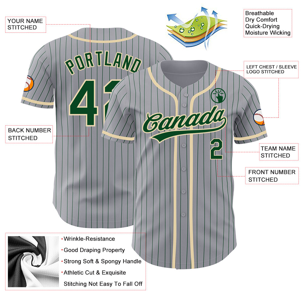 Custom Gray Green Pinstripe City Cream Authentic Baseball Jersey