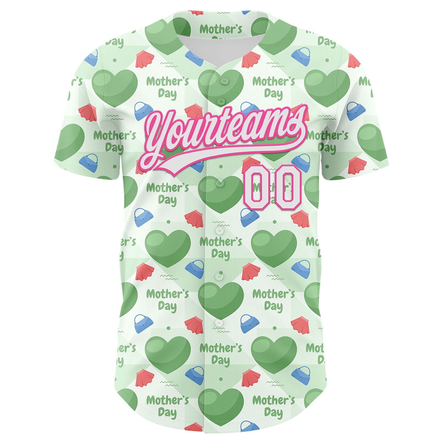 Custom Green White-Pink 3D Pattern Design Mother's Day Love Authentic Baseball Jersey
