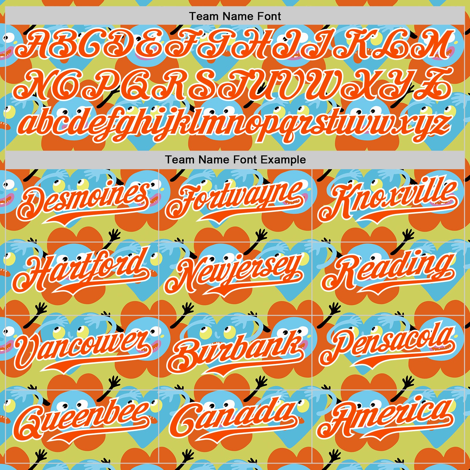 Custom Neon Yellow Orange-White 3D Pattern Design Funny Cartoon Flower And Heart Authentic Baseball Jersey