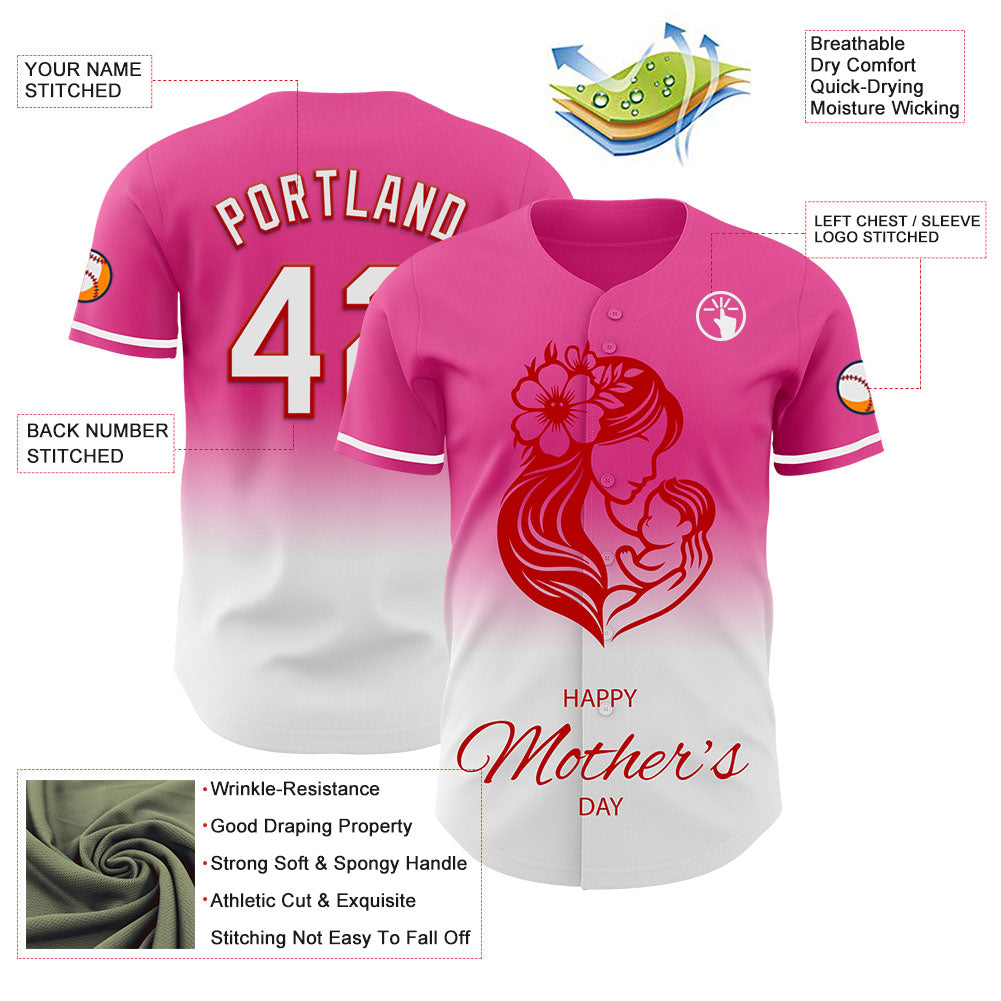 Custom Pink White-Red 3D Pattern Design Gradient Mother's Day Family Love Authentic Baseball Jersey
