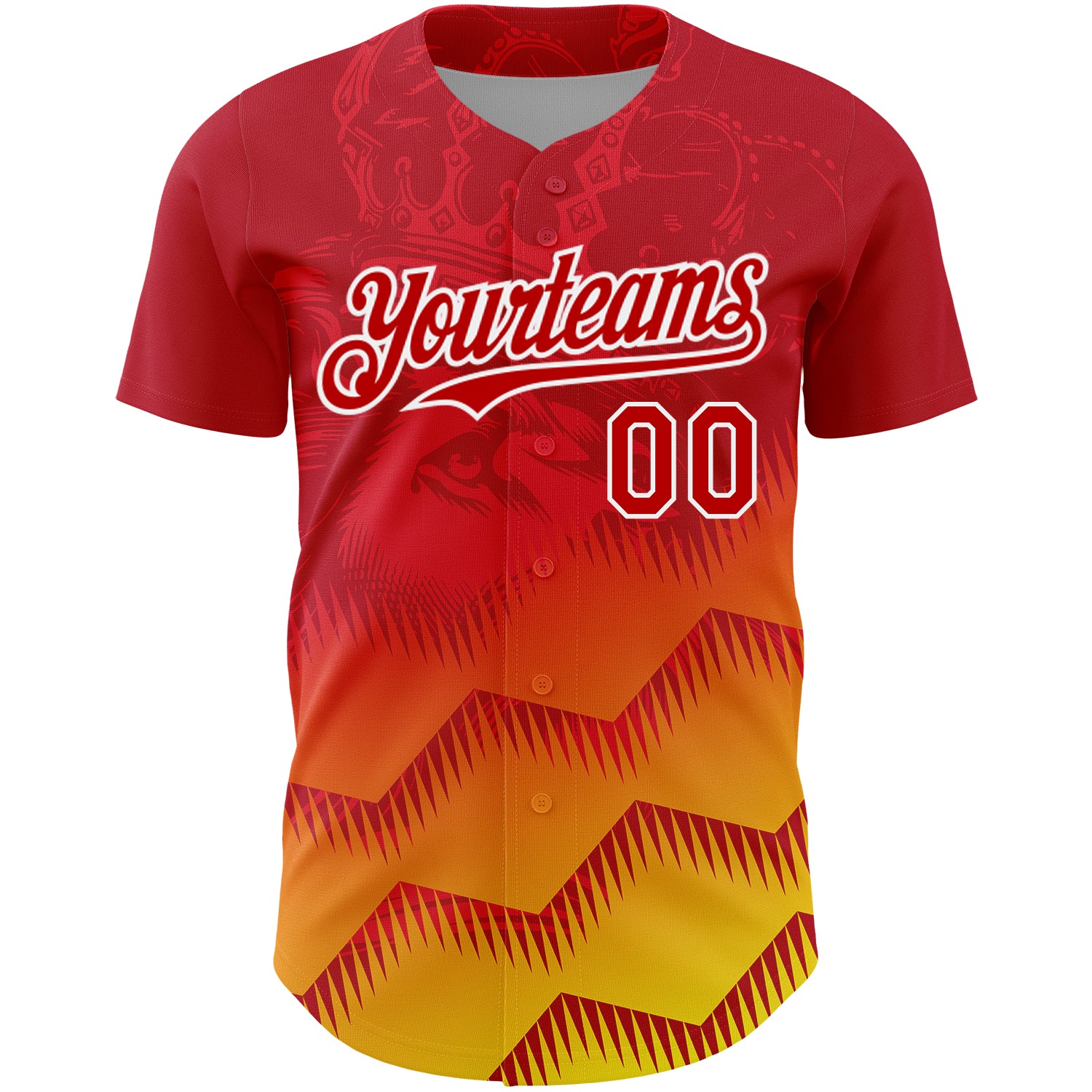 Custom Red Yellow-White 3D Pattern Design Animal Lion Authentic Baseball Jersey