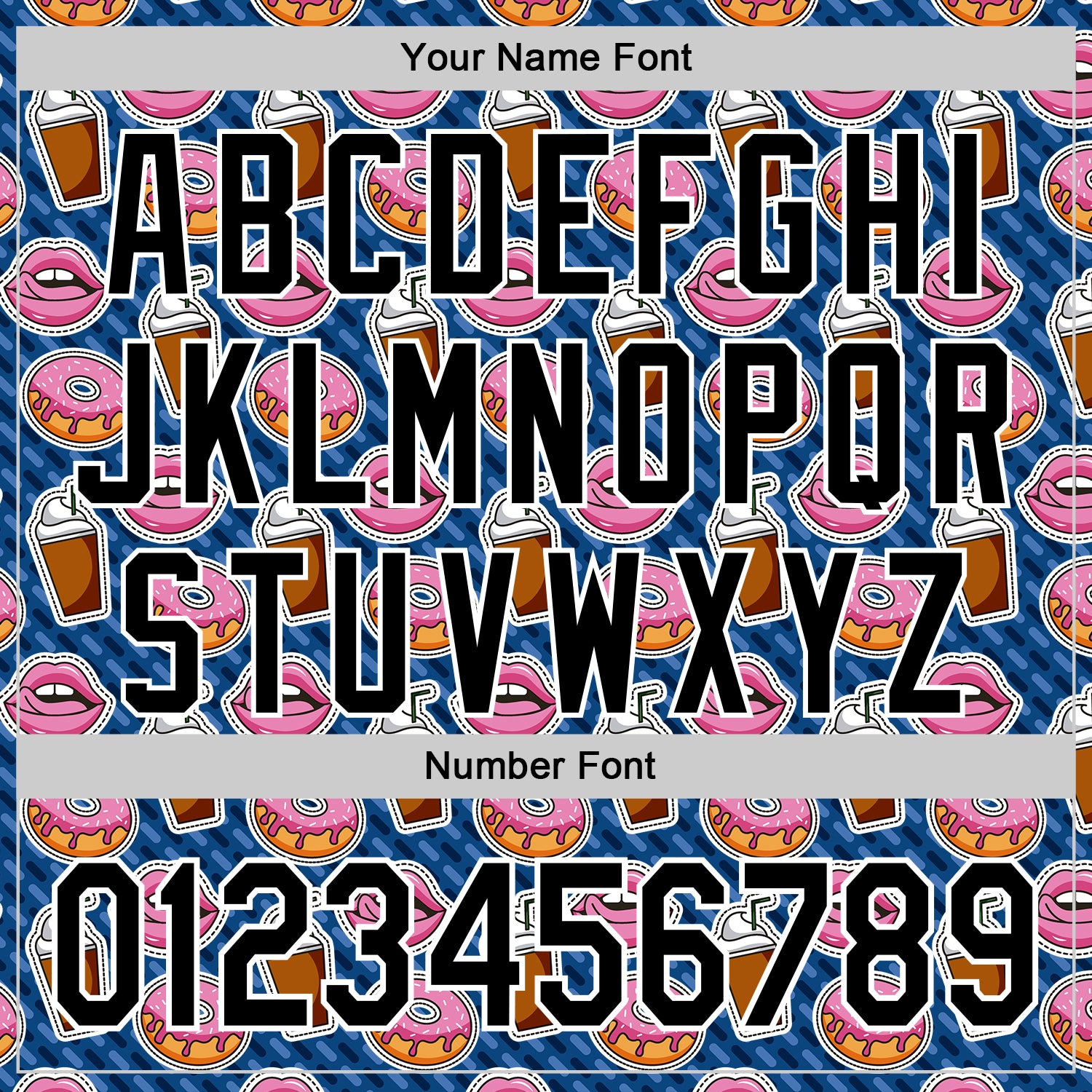 Custom US Navy Blue Black-White 3D Pattern Design Foodie Food Dessert Milkshake Donut Authentic Baseball Jersey