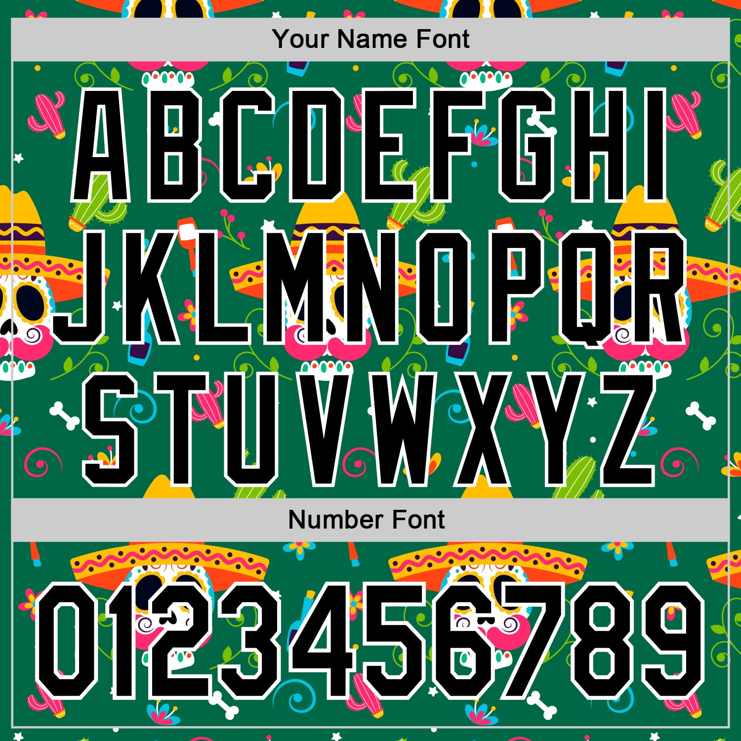 Custom Kelly Green Black-White 3D Mexican Festival Flower Skull With Sombrero Cinco de Mayo Authentic Baseball Jersey