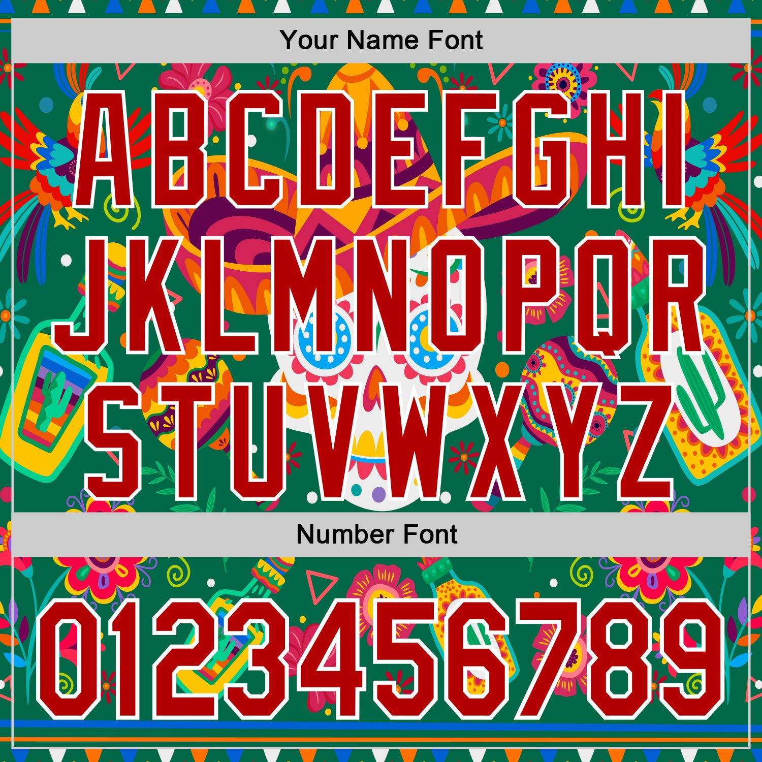 Custom Kelly Green Red-White 3D Mexican Festival Flower Skull With Sombrero Cinco de Mayo Authentic Baseball Jersey