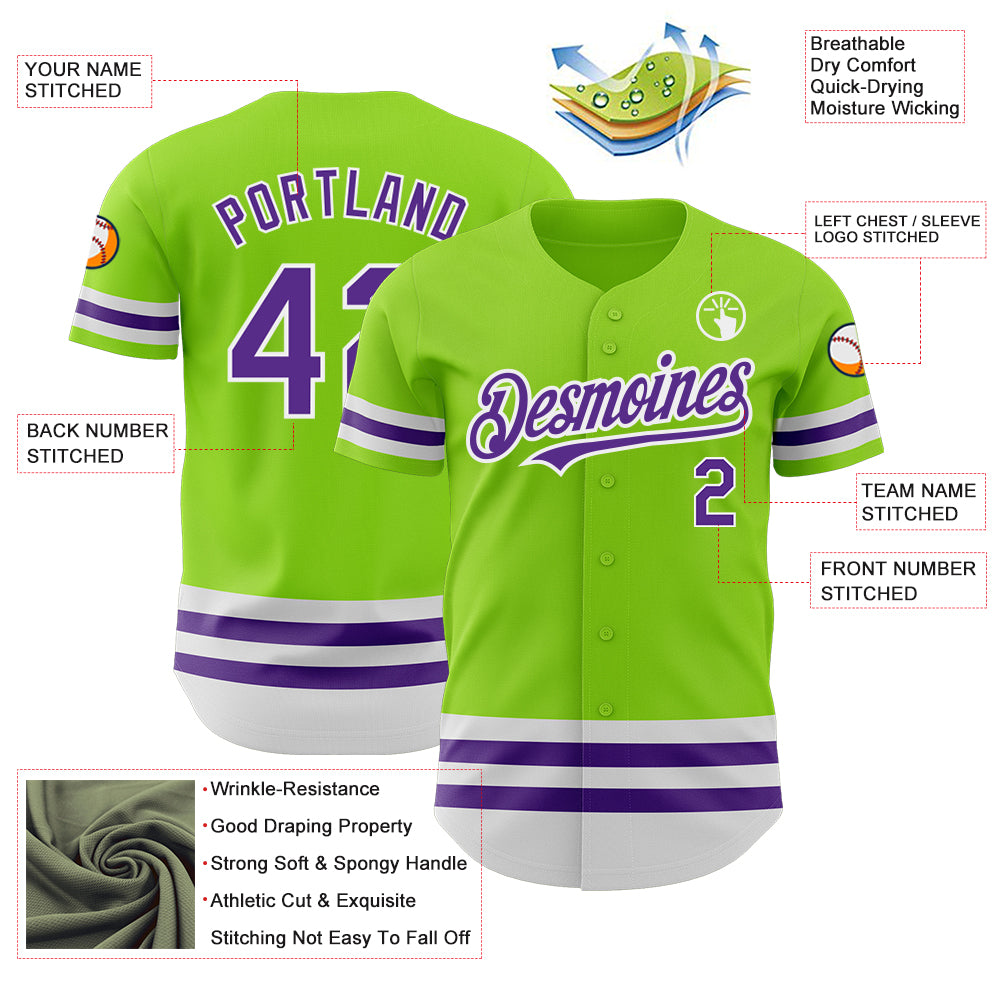 Custom Neon Green Purple-White Line Authentic Baseball Jersey