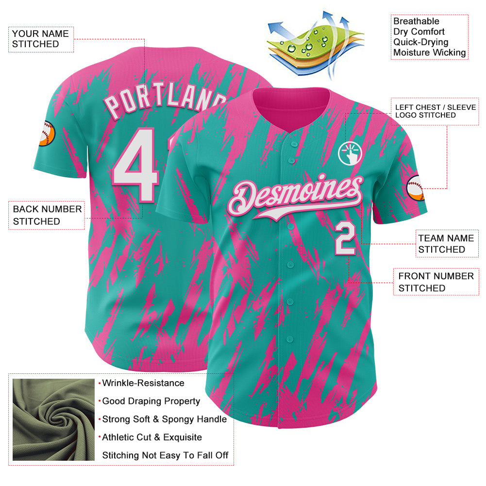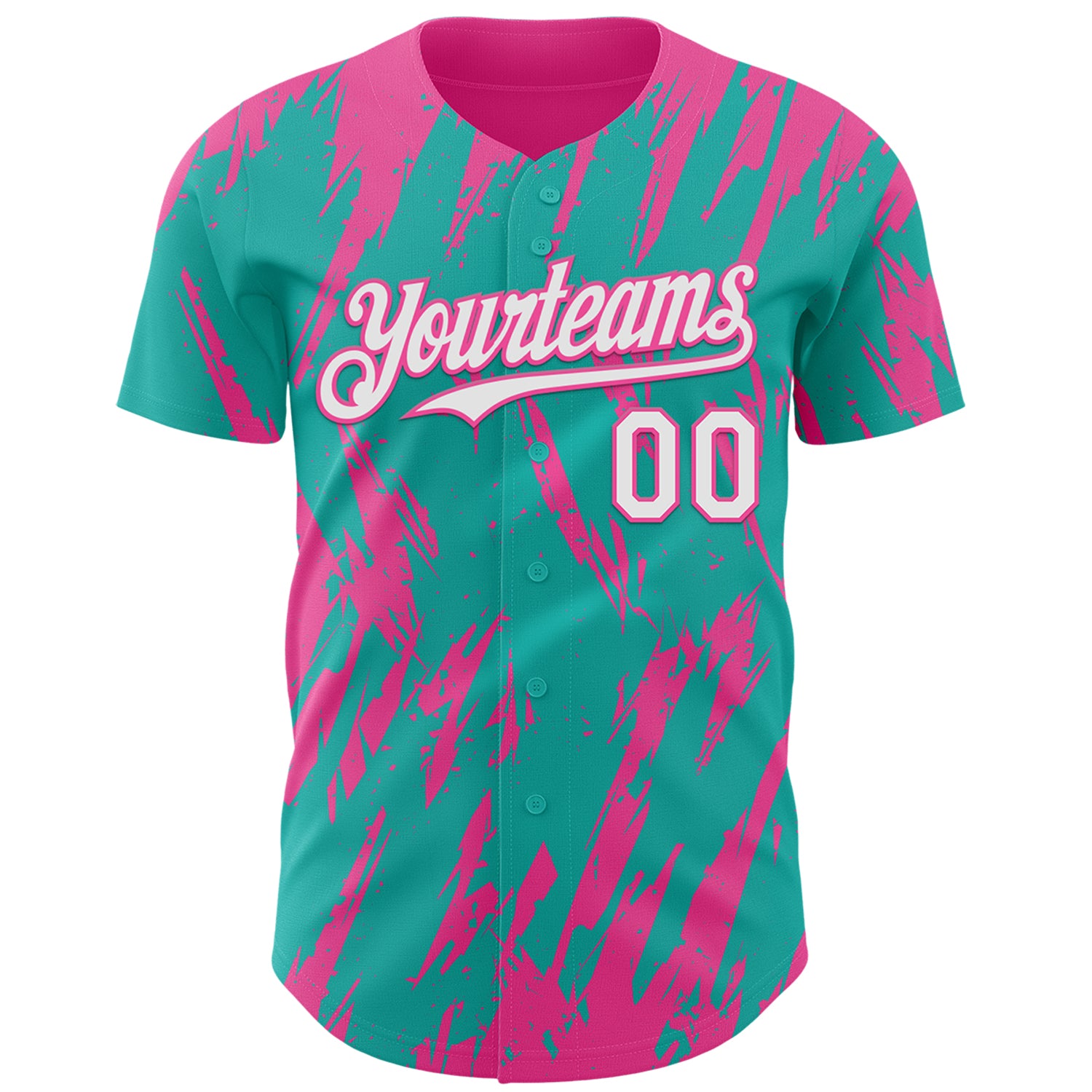 Custom Aqua White-Pink 3D Pattern Design Splatter Torn Sharp Brush Stroke Authentic Baseball Jersey