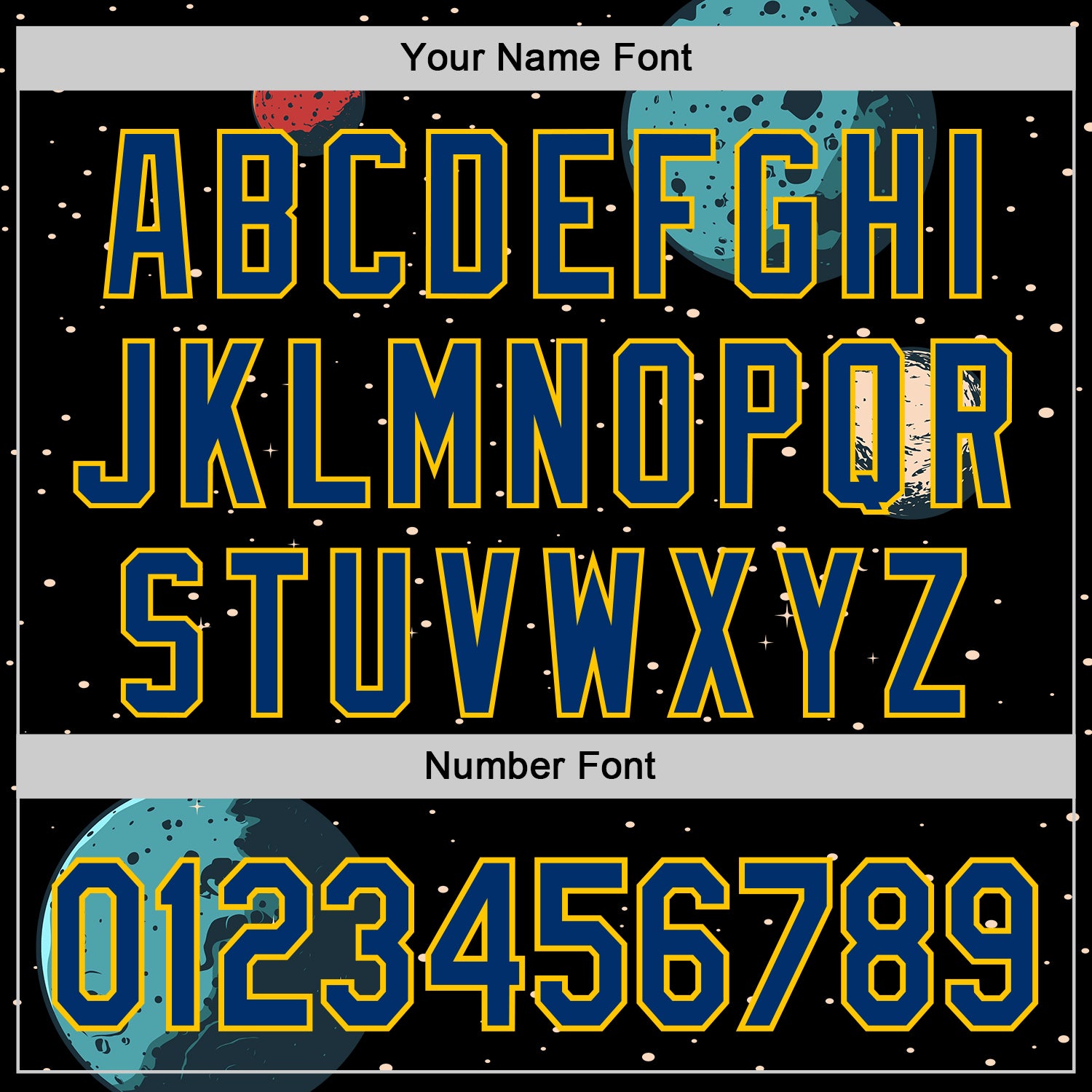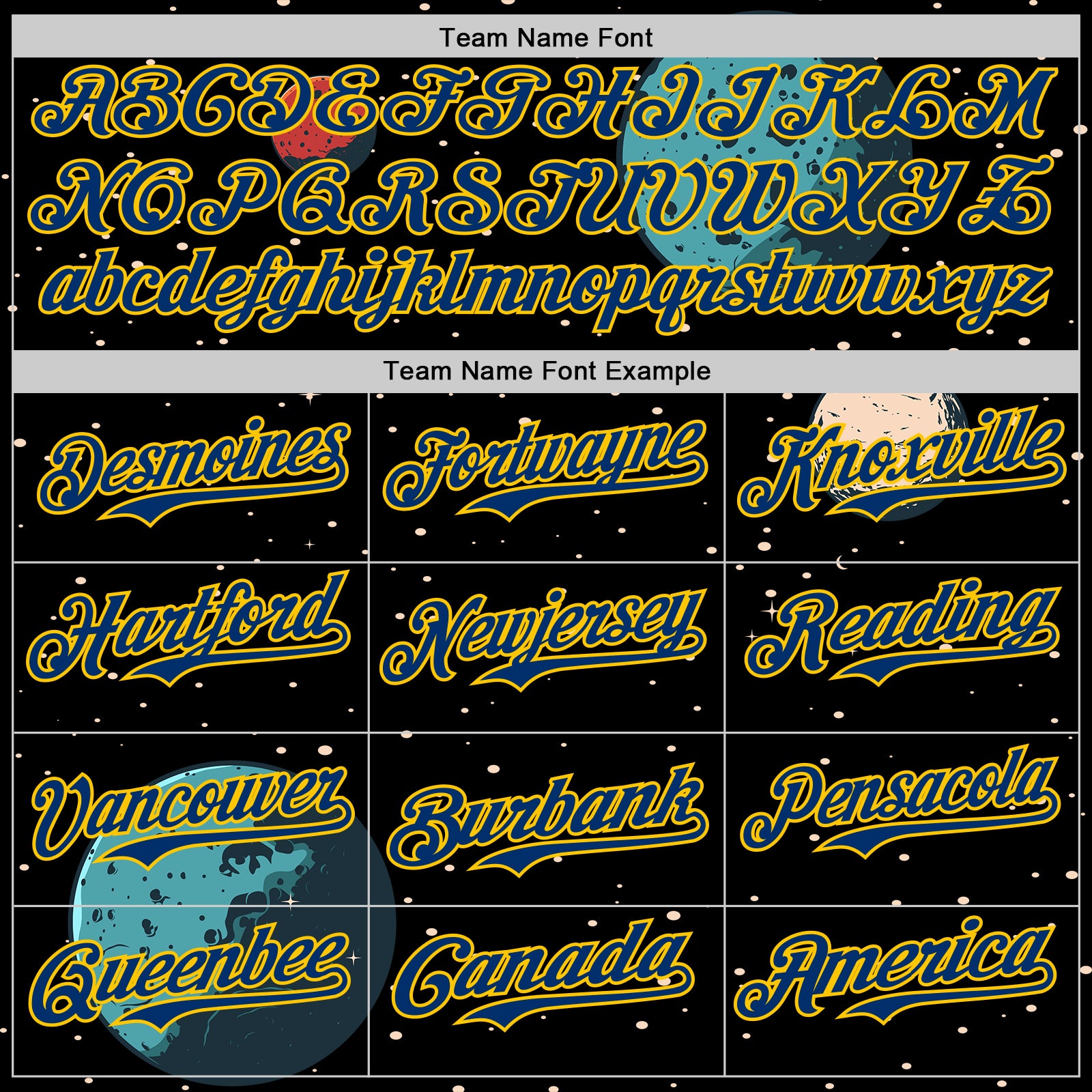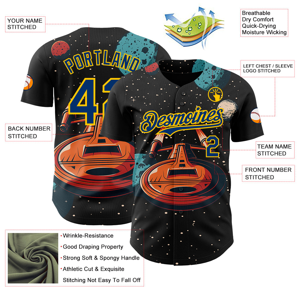 Custom Black US Navy Blue-Yellow 3D Pattern Design Alien UFO Interstellar Starship Galaxy Authentic Baseball Jersey