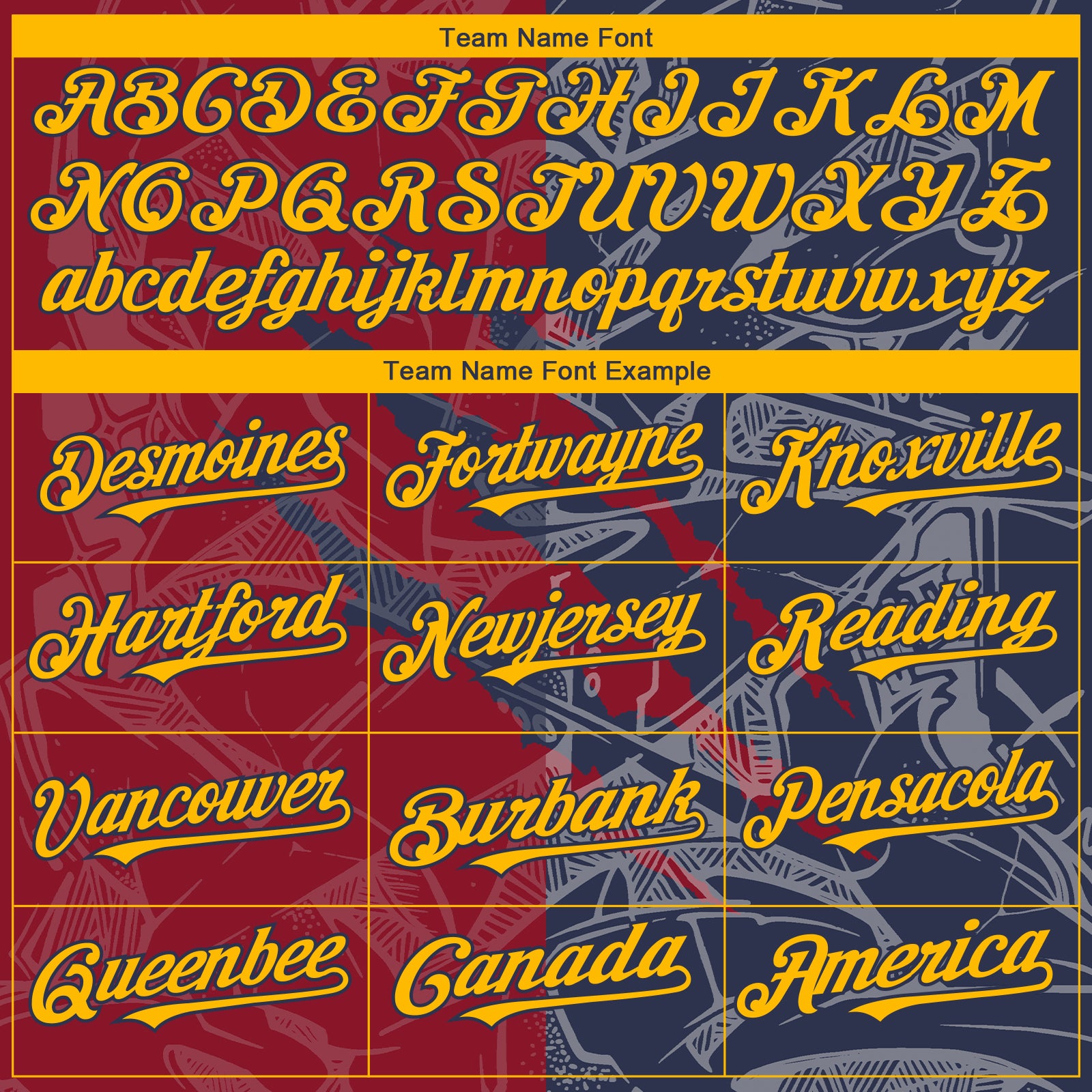 Custom Graffiti Pattern Gold Navy-Crimson 3D Scratch Authentic Baseball Jersey