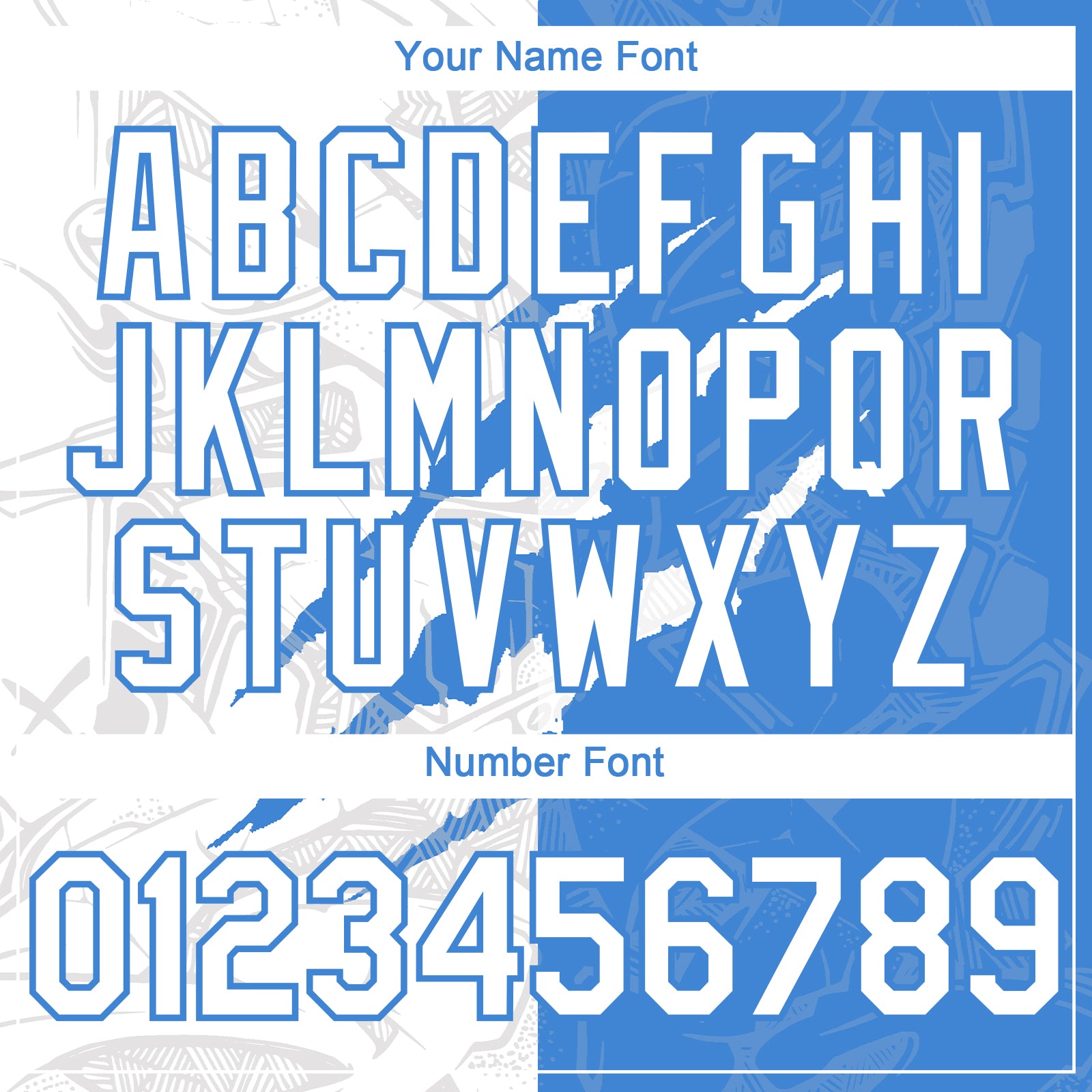 Custom Graffiti Pattern White-Electric Blue 3D Scratch Authentic Baseball Jersey