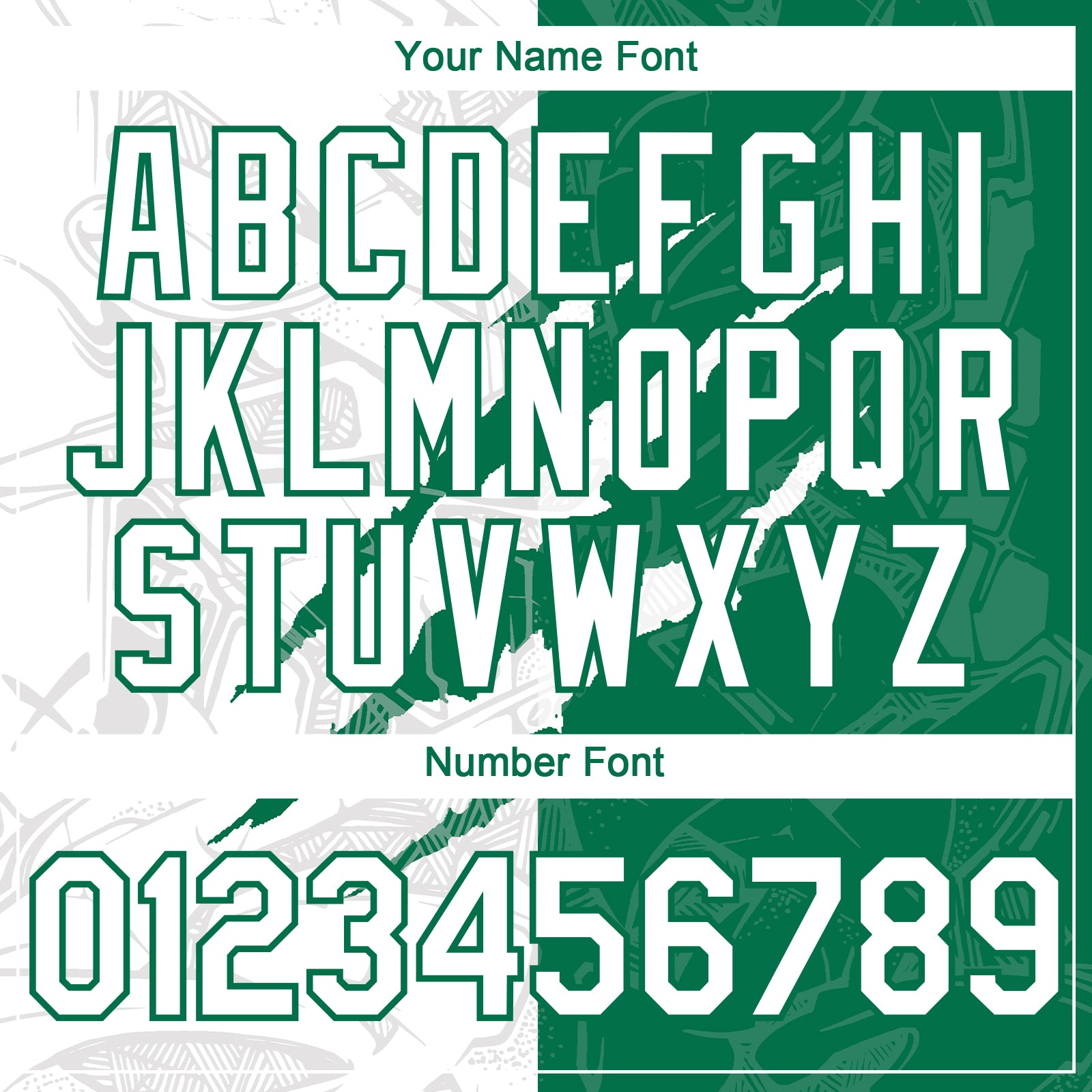 Custom Graffiti Pattern White-Kelly Green 3D Scratch Authentic Baseball Jersey