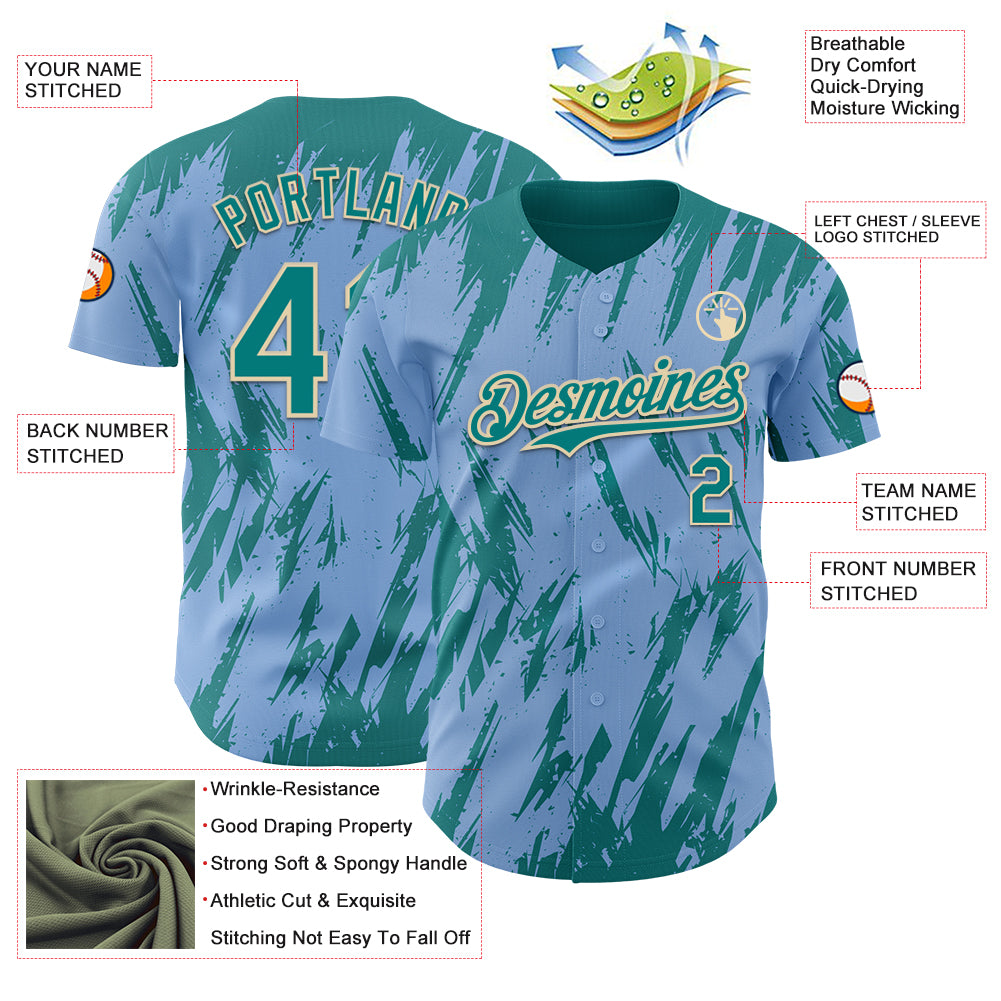 Custom Light Blue Teal-Cream 3D Pattern Design Splatter Torn Sharp Brush Stroke Authentic Baseball Jersey