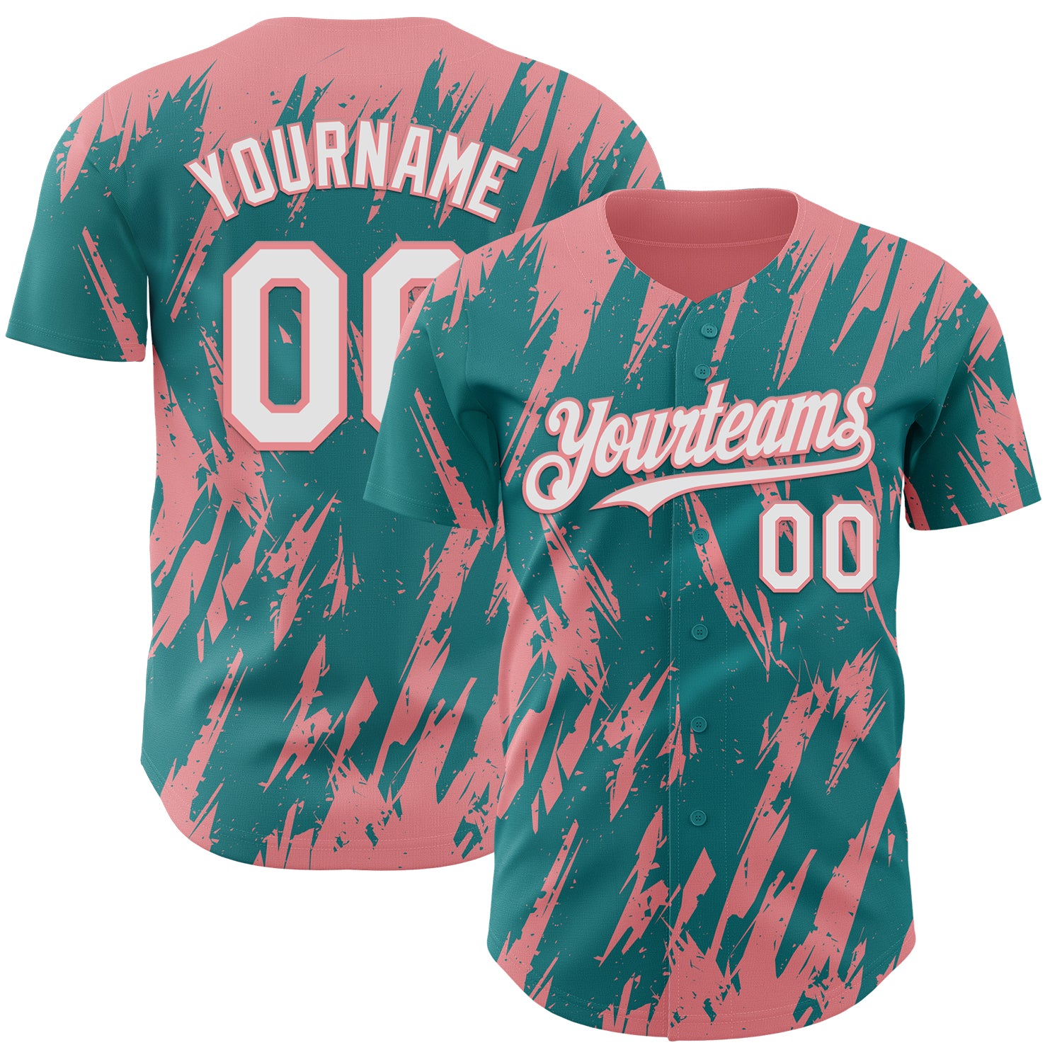 Custom Teal White-Medium Pink 3D Pattern Design Splatter Torn Sharp Brush Stroke Authentic Baseball Jersey