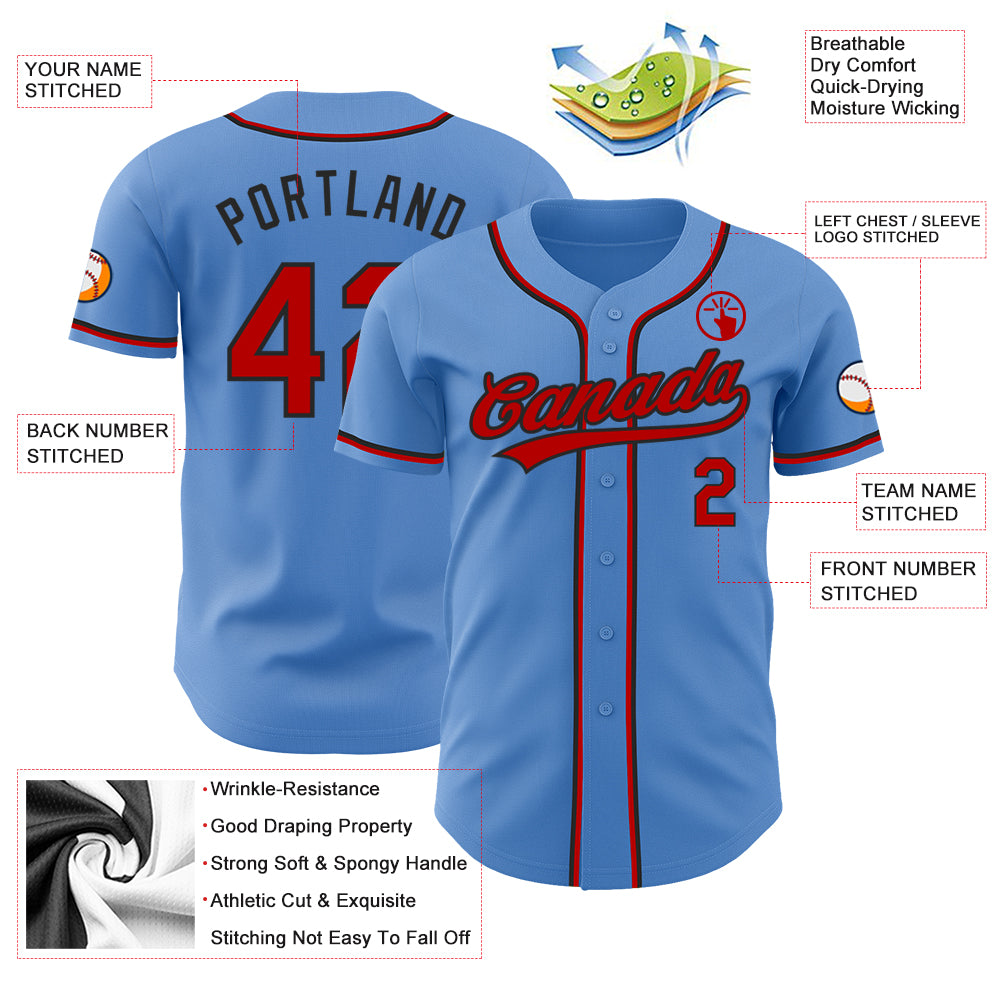 Custom Powder Blue Red-Black Authentic Baseball Jersey