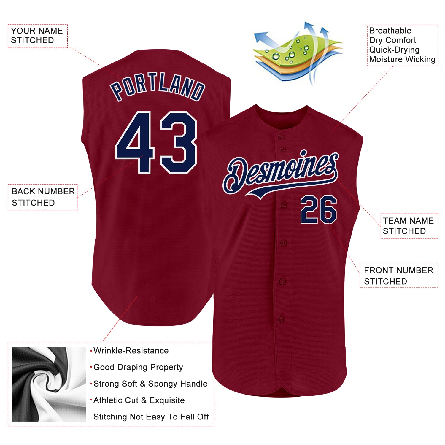Custom Crimson Navy-White Authentic Sleeveless Baseball Jersey