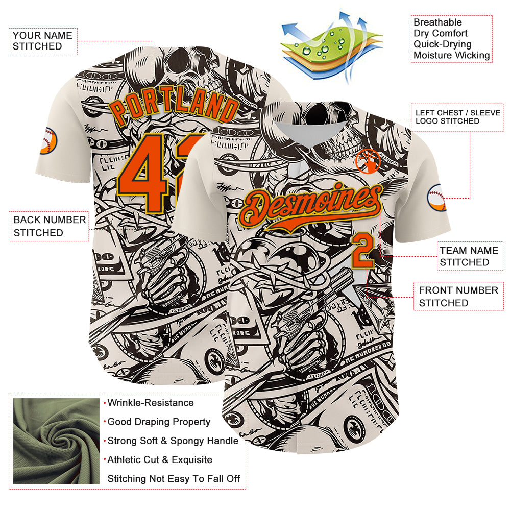 Custom White Orange Black-Yellow 3D Pattern Design Rave Party Vintage Cash Money Authentic Baseball Jersey