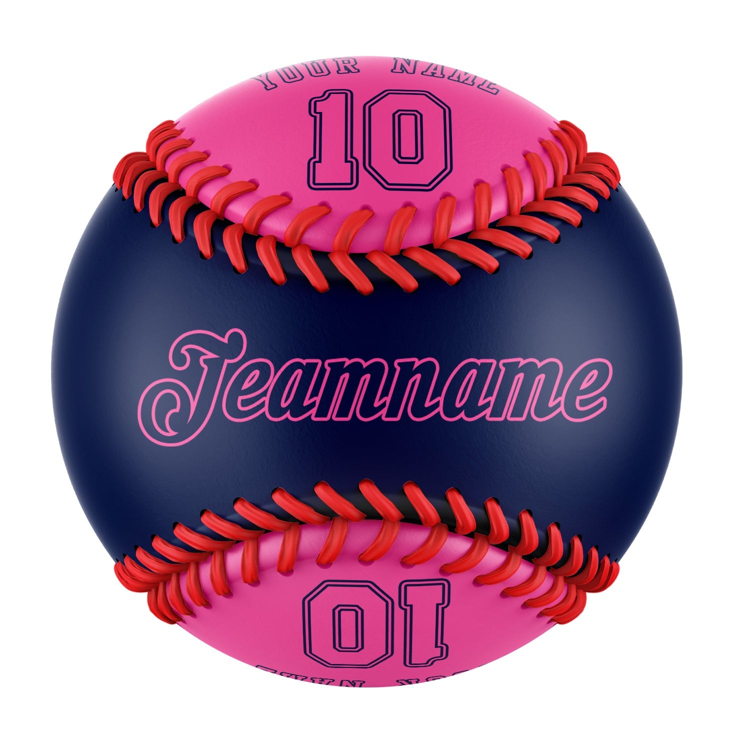 Personalized Navy Pink Half Leather Pink Authentic Baseballs