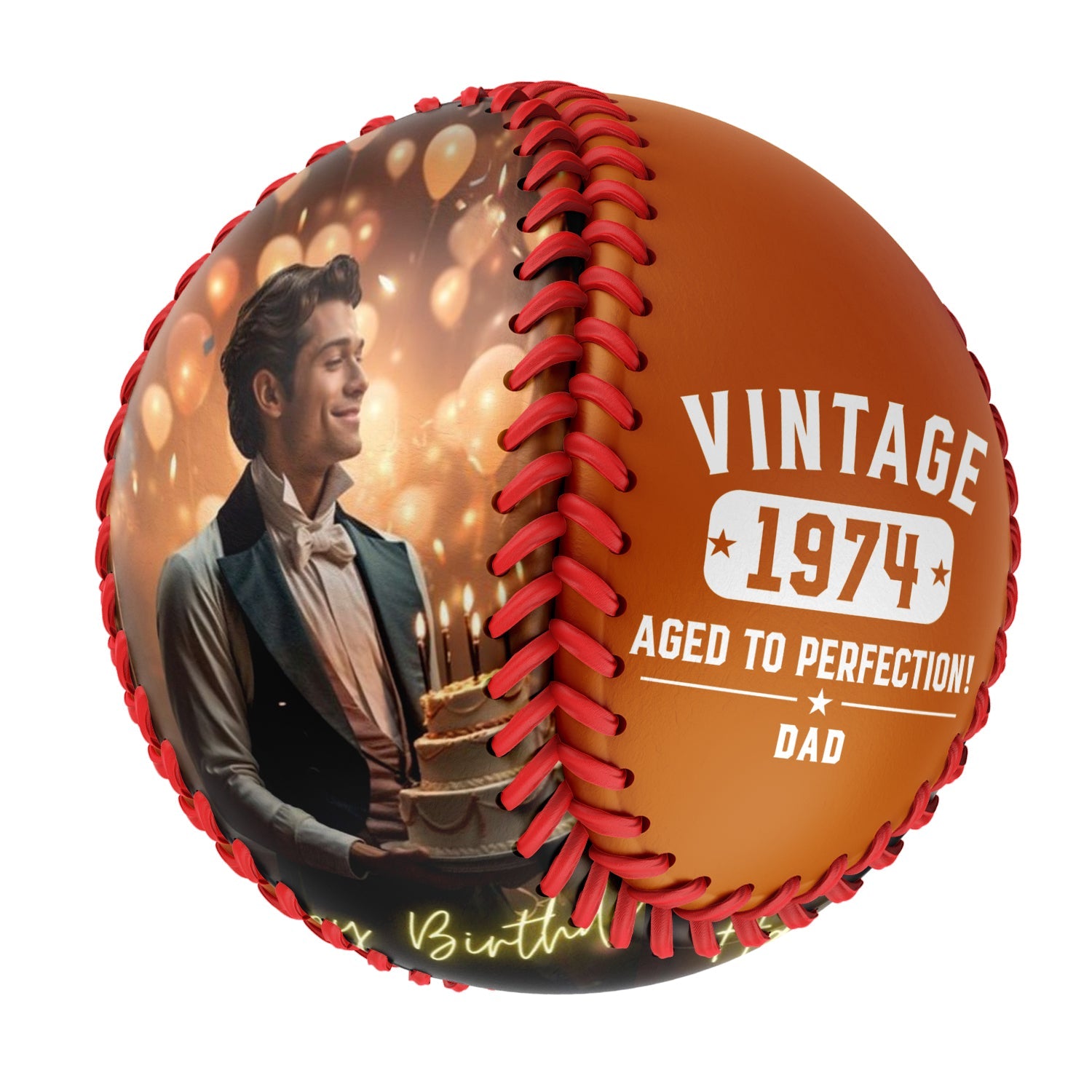 Personalized Dad Grandpa Birthday Name Time Photo Orange Baseballs