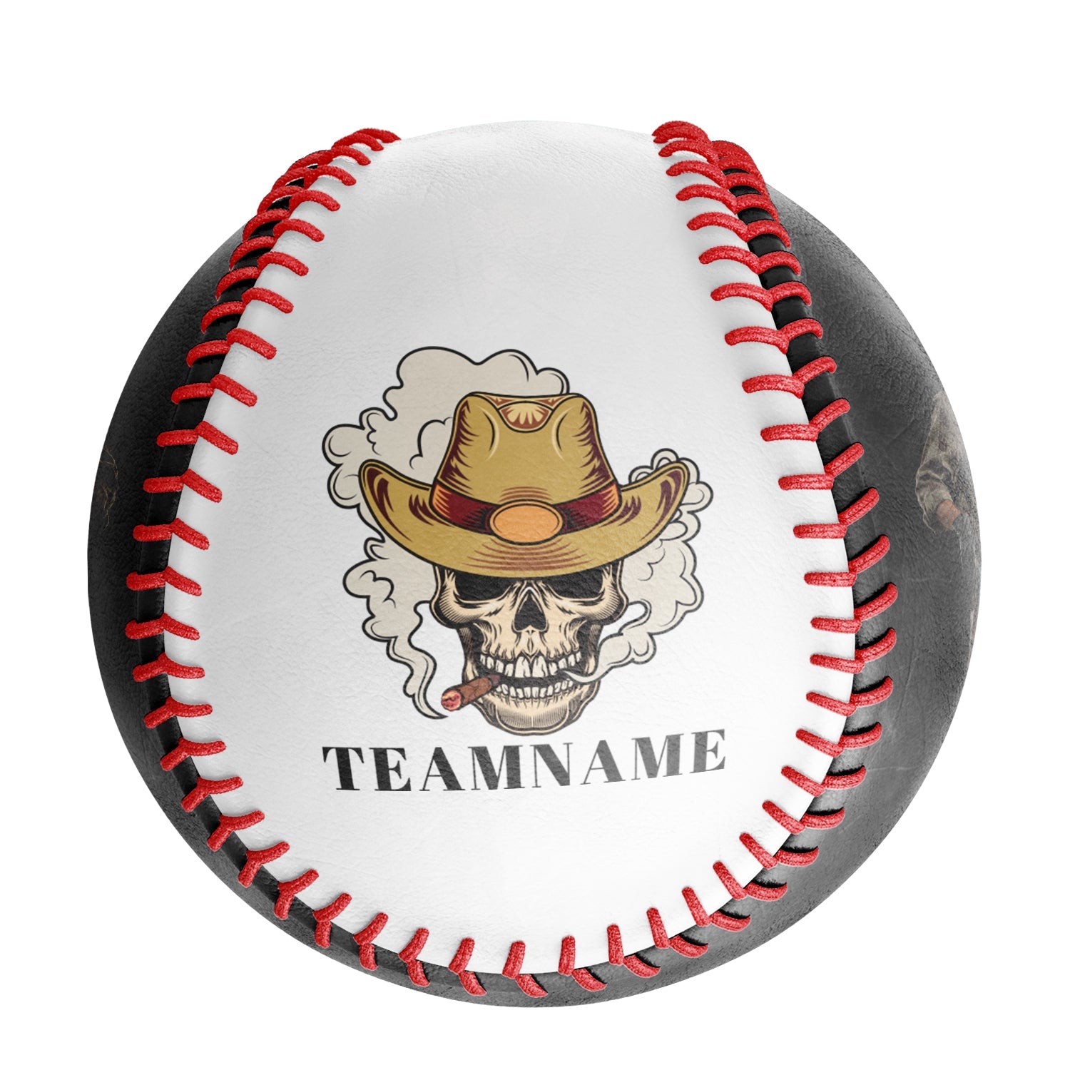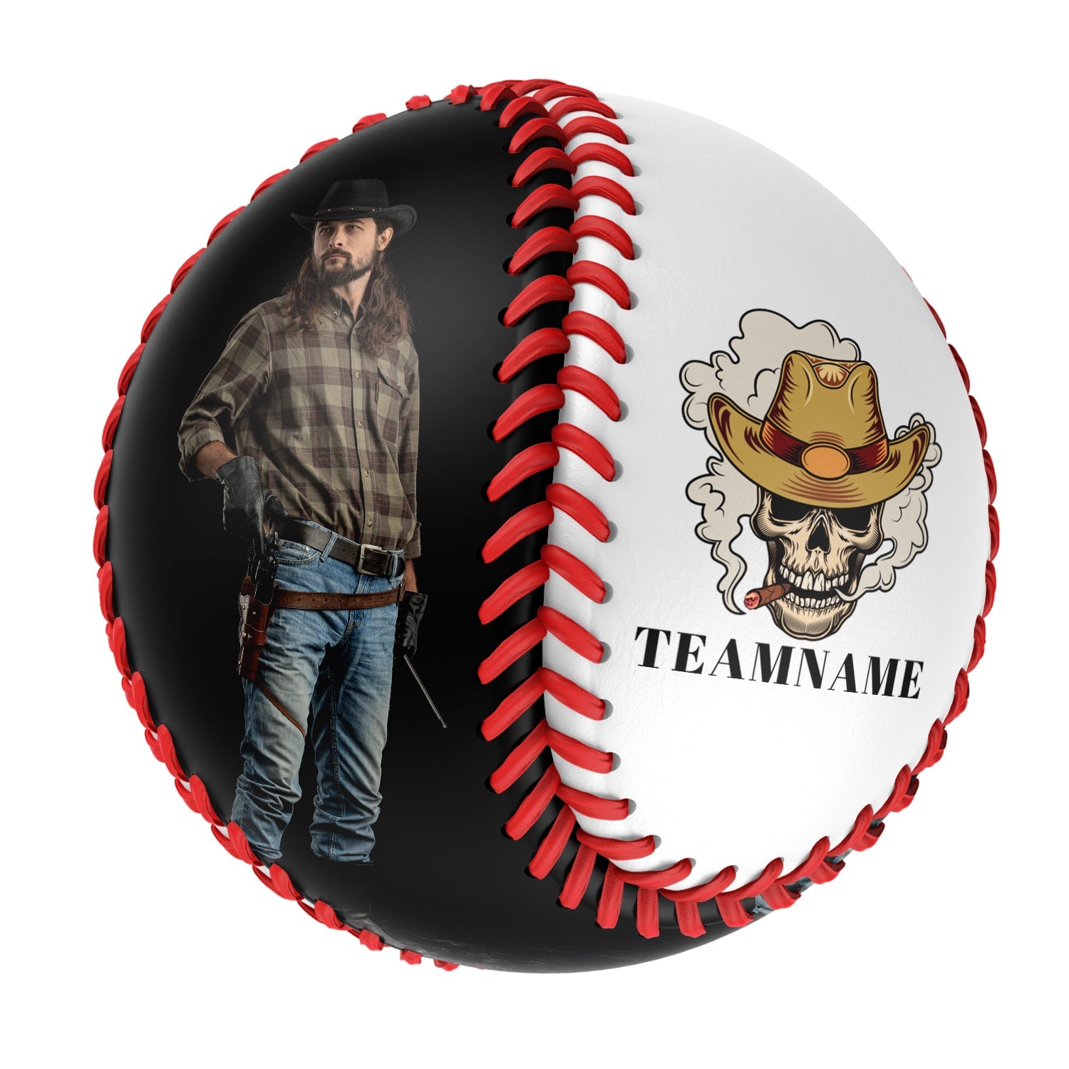Personalized White Cowboy Smoking Skull Photo Baseballs