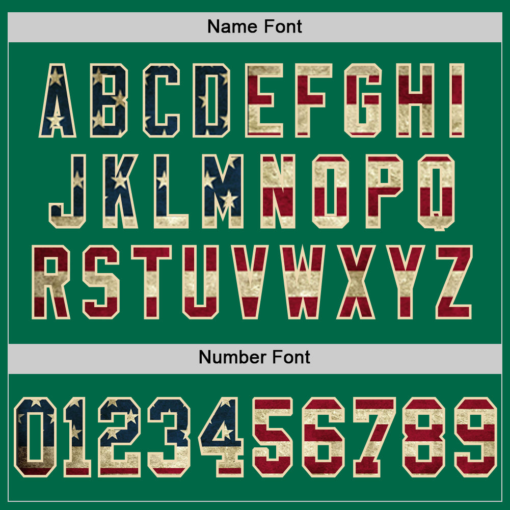 Custom Kelly Green Vintage USA Flag Cream-Red Mesh Authentic Throwback Football Jersey