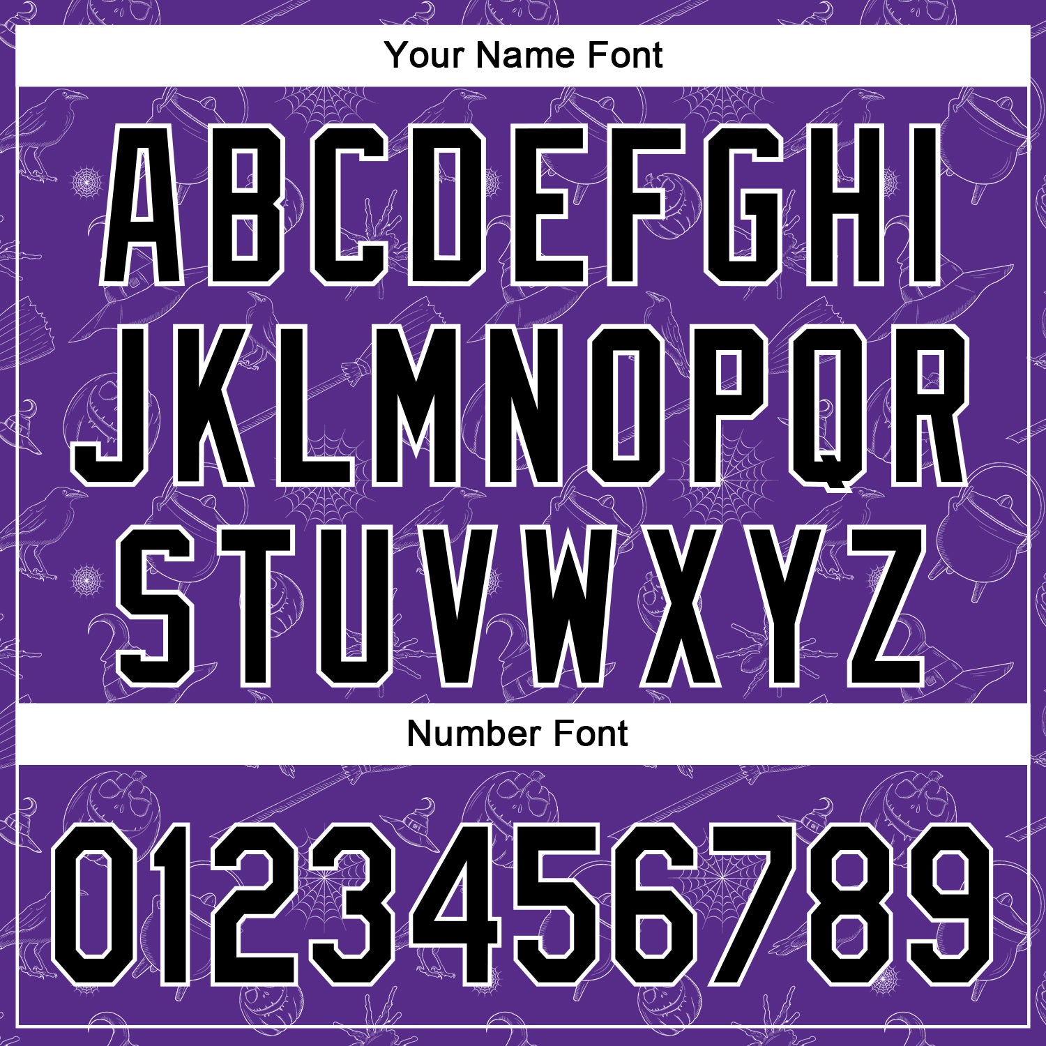 Custom Purple Black-White 3D Halloween Authentic Baseball Jersey