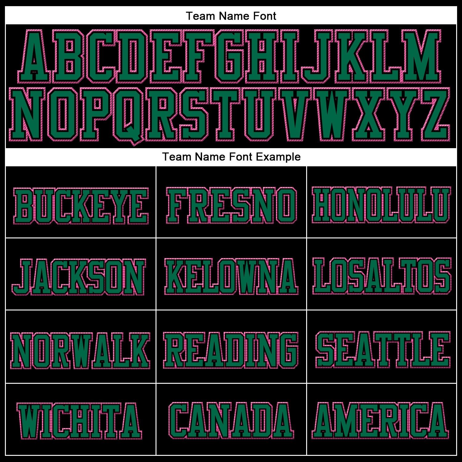Custom Black Kelly Green-Pink Stitched Cuffed Knit Hat