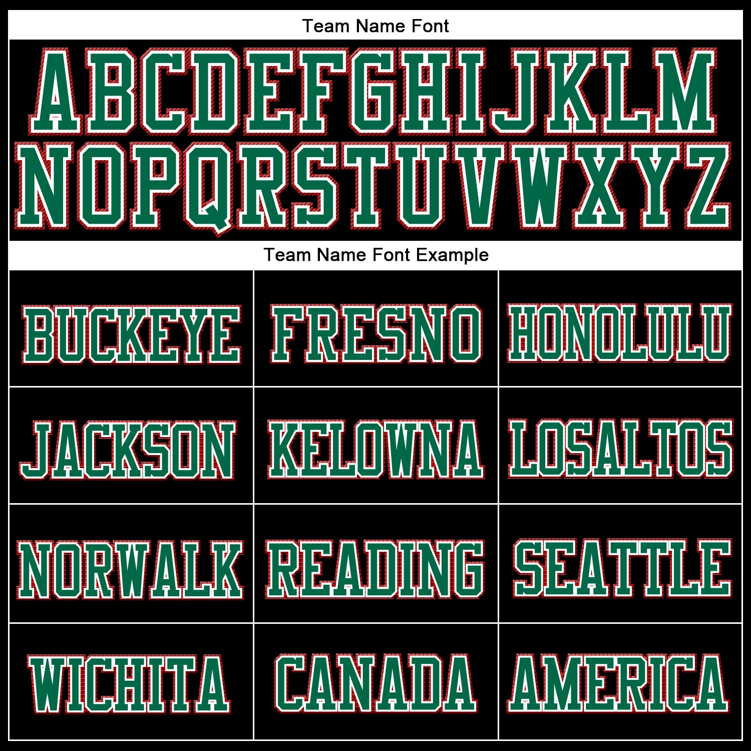 Custom Black Kelly Green White-Red Stitched Cuffed Knit Hat